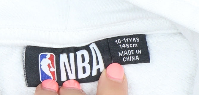 NBA Boys White Chicago Bulls Pullover Hoodie 10-11 Years Cotton Blend