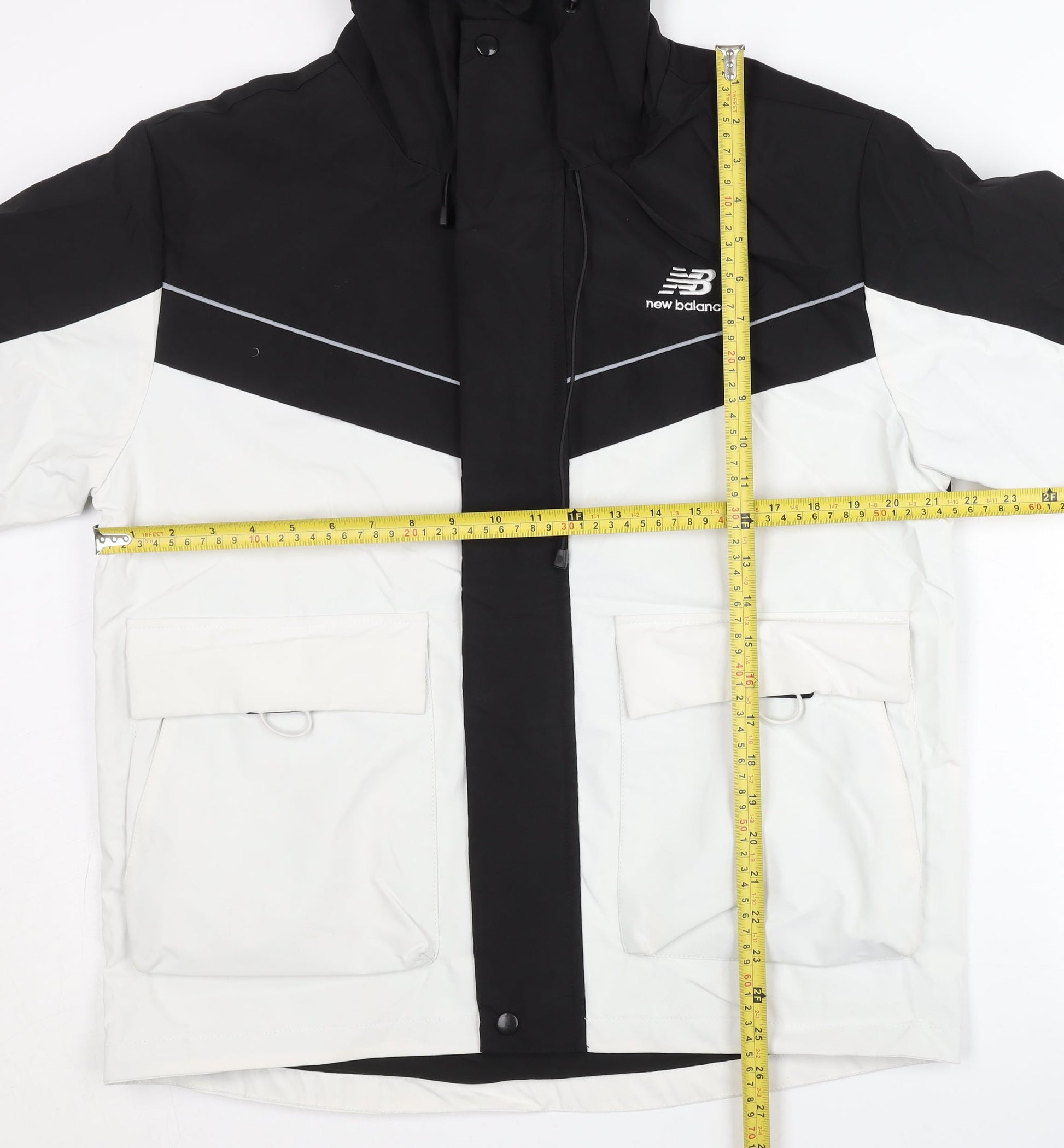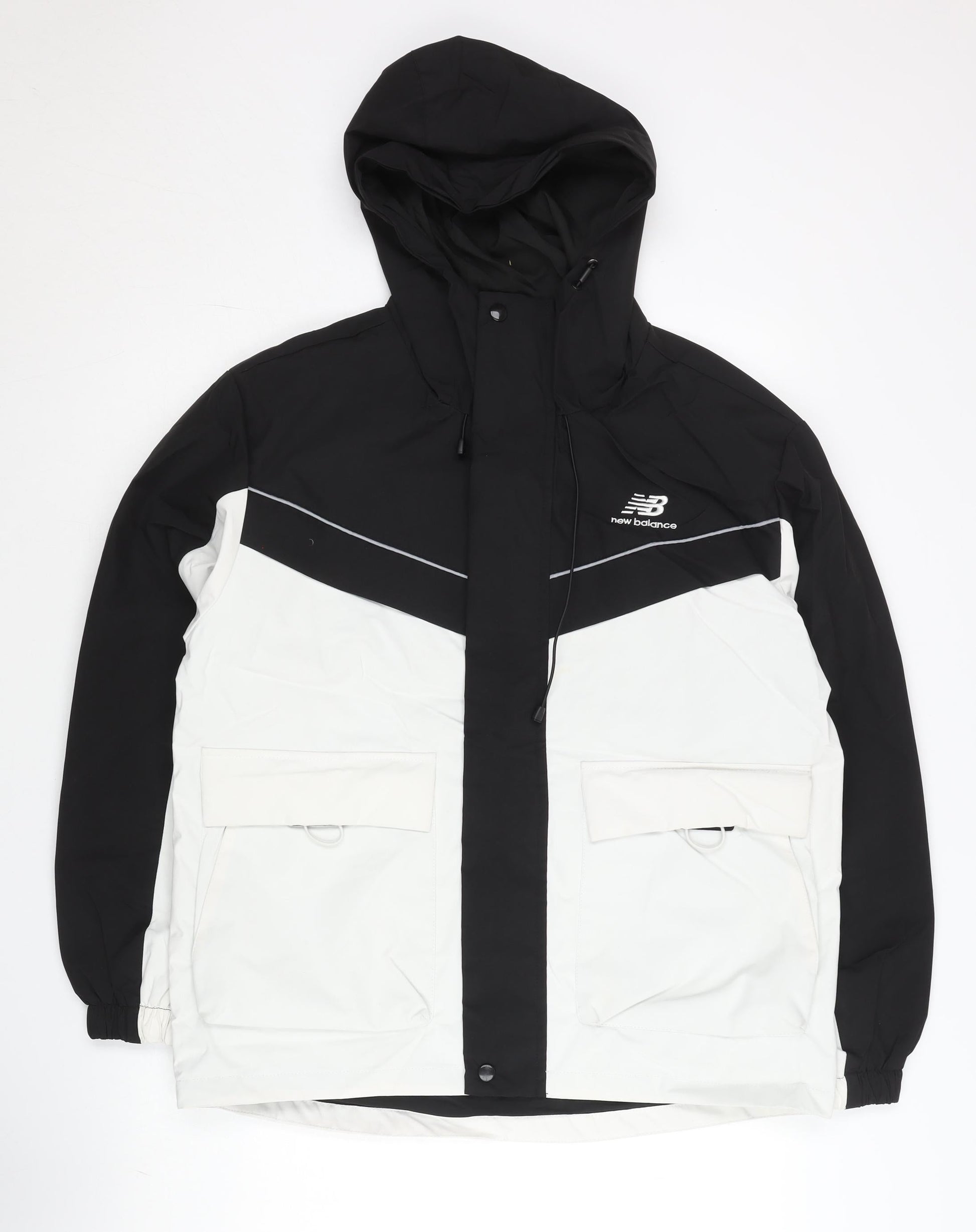 New Balance Men's Black & White Hooded Parka Jacket M Polyester