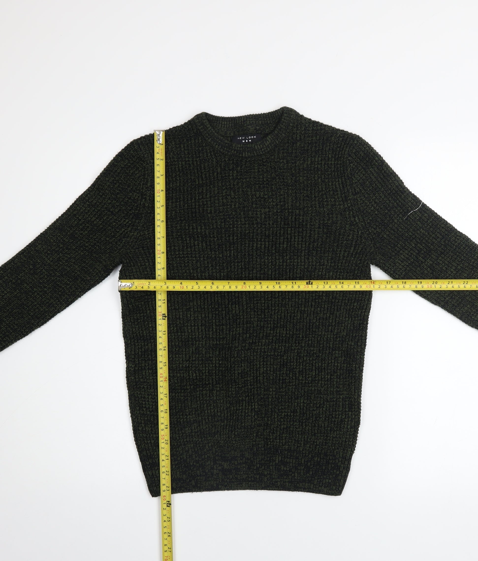 New Look Men Green Chunky-Knit Crew Neck Jumper XS
