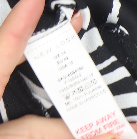 New Look Women Black White Animal Print Long Sleeve Button-Up Shirt UK 14