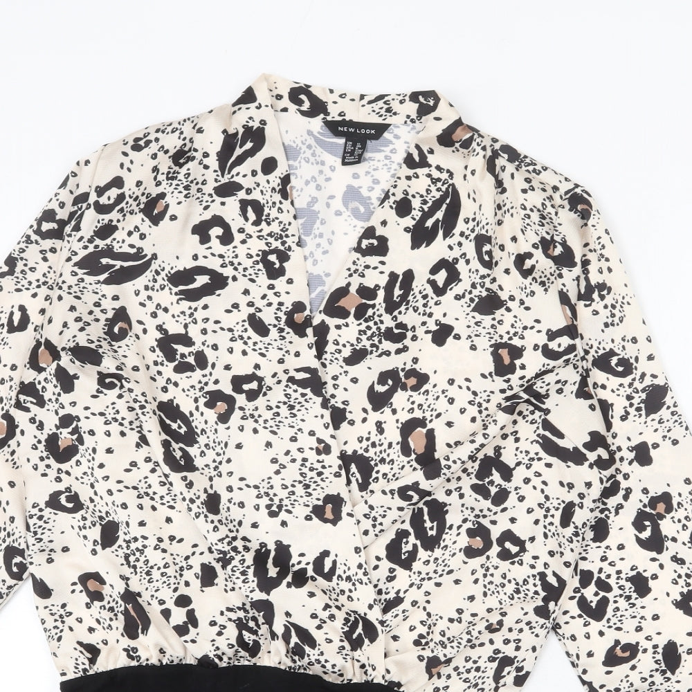 New Look Womens Beige Animal Print Polyester Playsuit One-Piece Size 12 Snap - Leopard Print