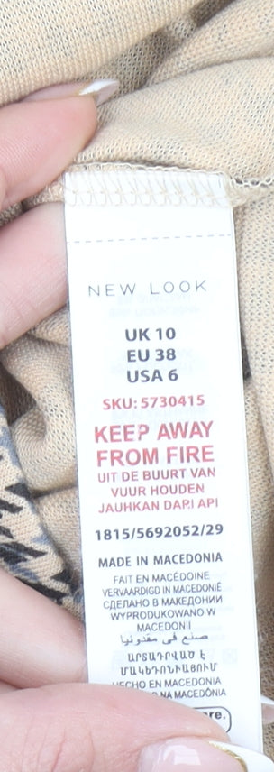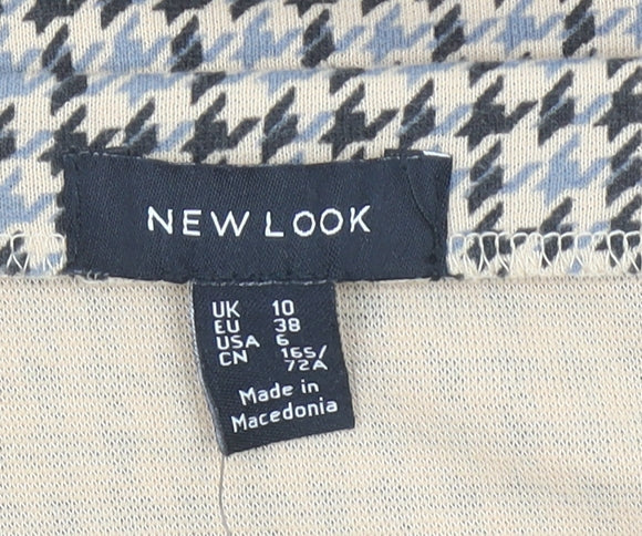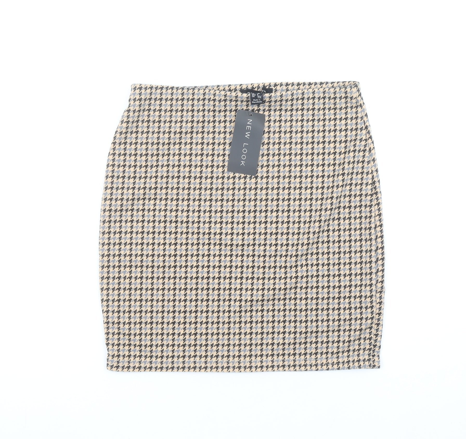 New Look Women's Beige Check Pencil Skirt Size 10 Stretch Workwear