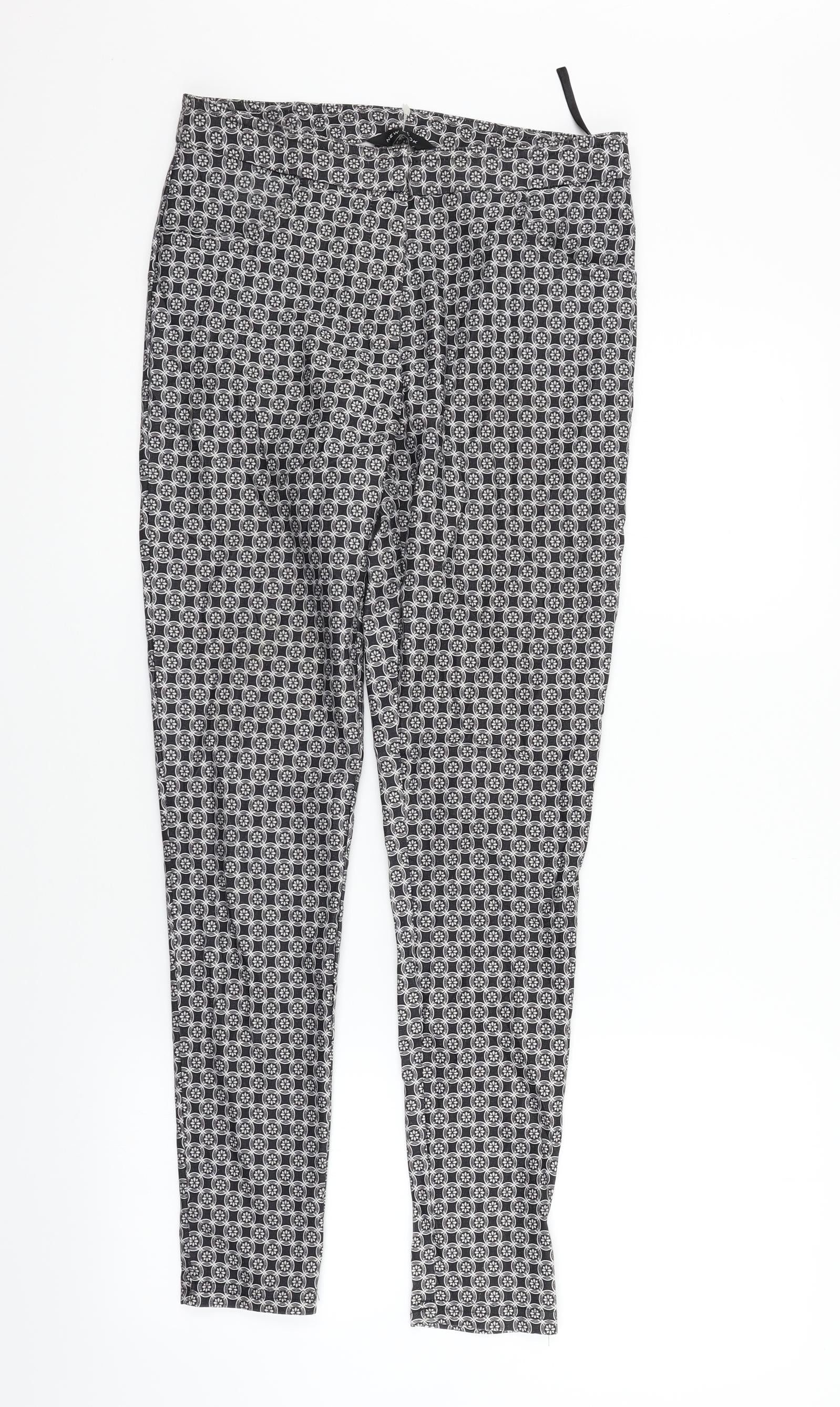 New Look Womens Grey Geometric Trousers Size 8 L28 in