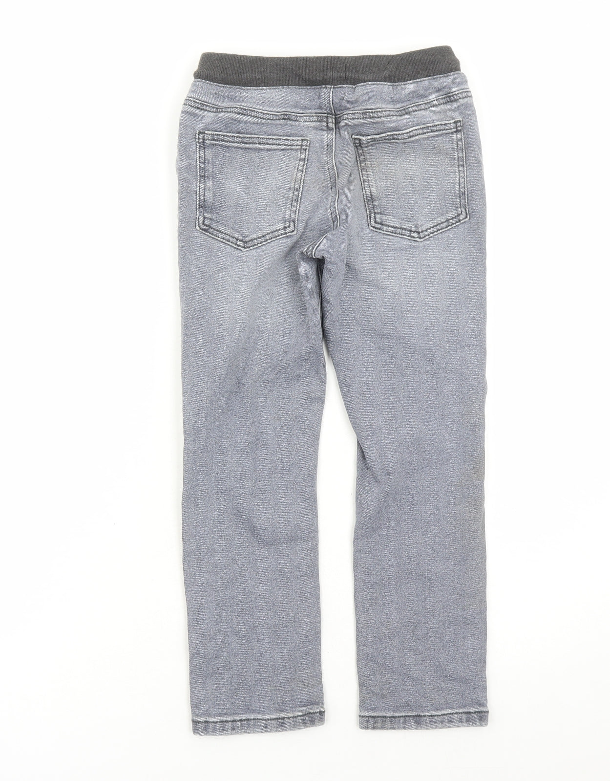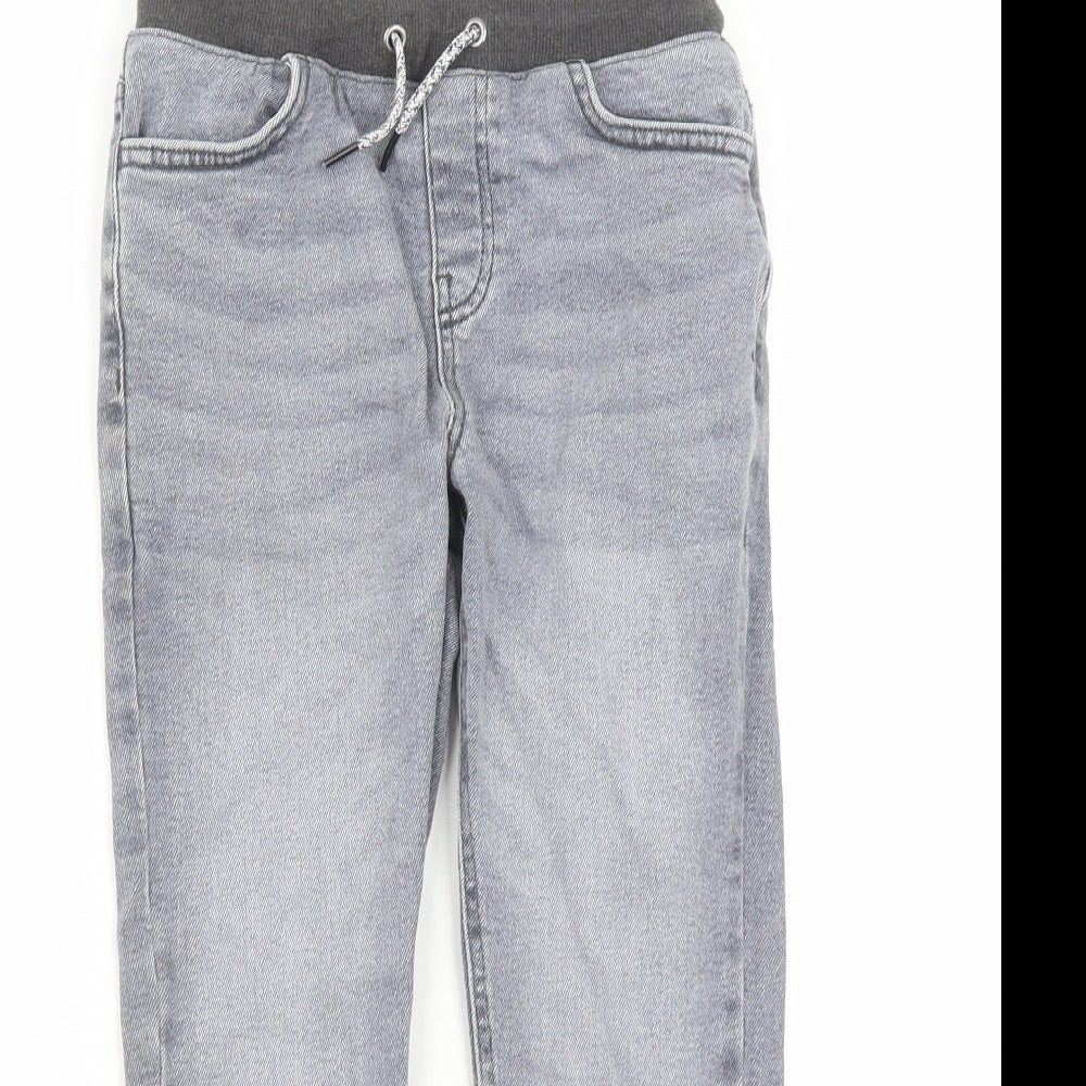 NEXT Boys Grey Cotton Straight Jeans Size 9 Months L22 in Extra-Slim Drawstring - Elasticated Waist