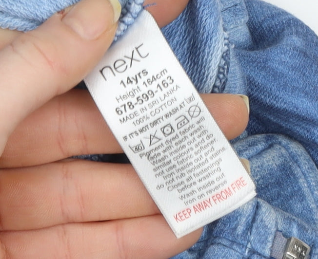 Next Girls Blue Cotton Biker Jacket 14 Years Zip Front Casual Outerwear