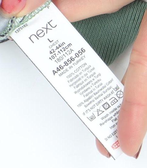 Next Men's Green Striped Short Sleeve Cotton Polo Shirt Size L