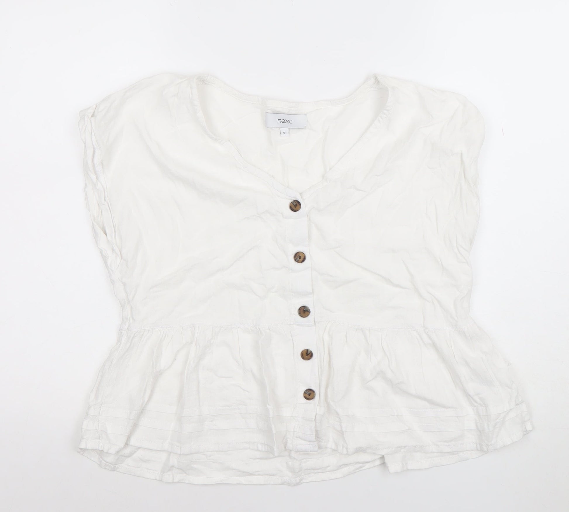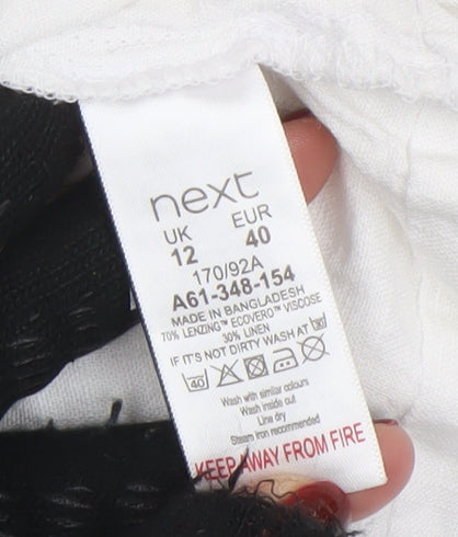 Next Women’s White Linen Blend Button Tunic Blouse Size 12