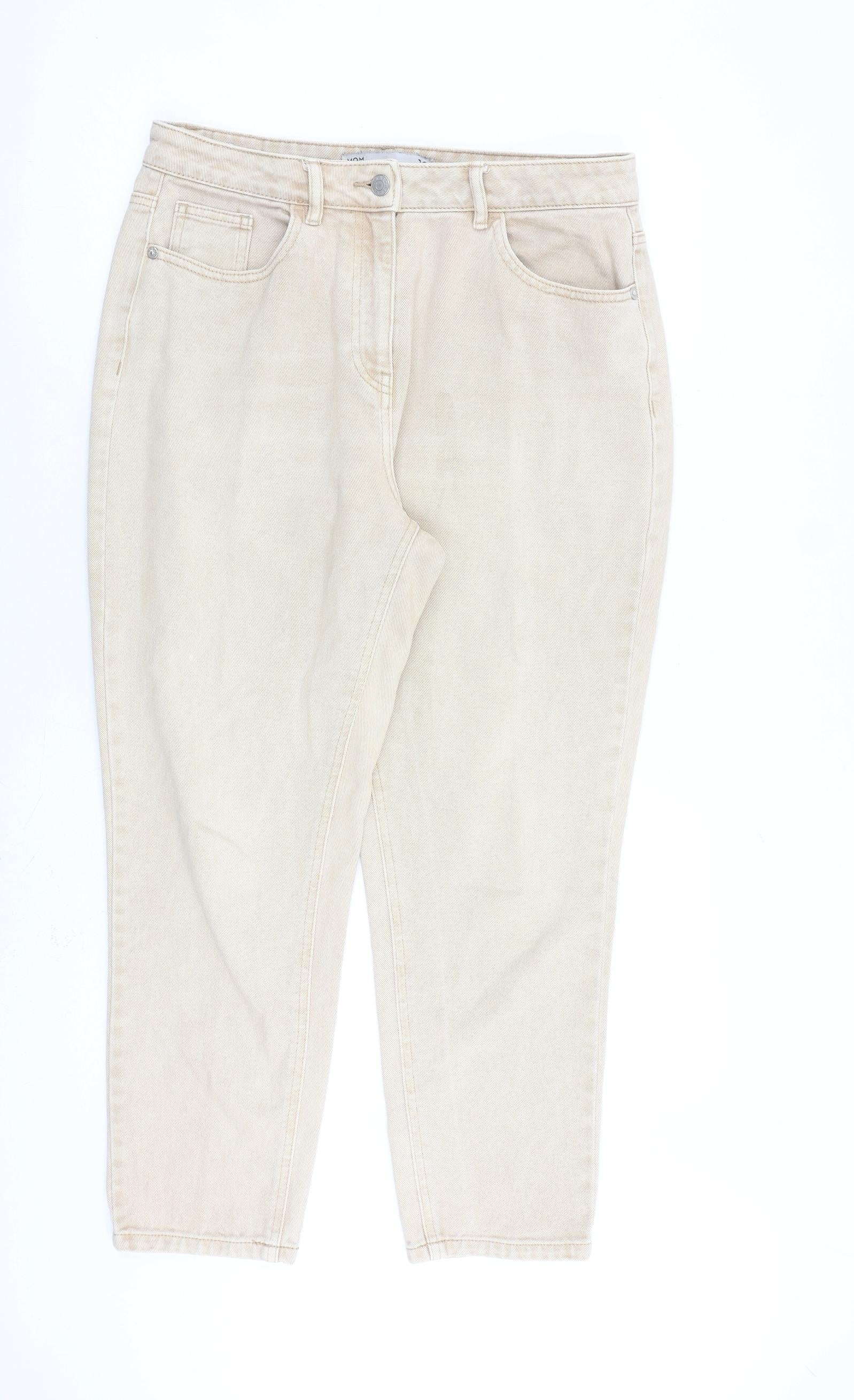 NEXT Womens Beige Cotton Tapered Jeans Size 12 L26 in Regular Zip