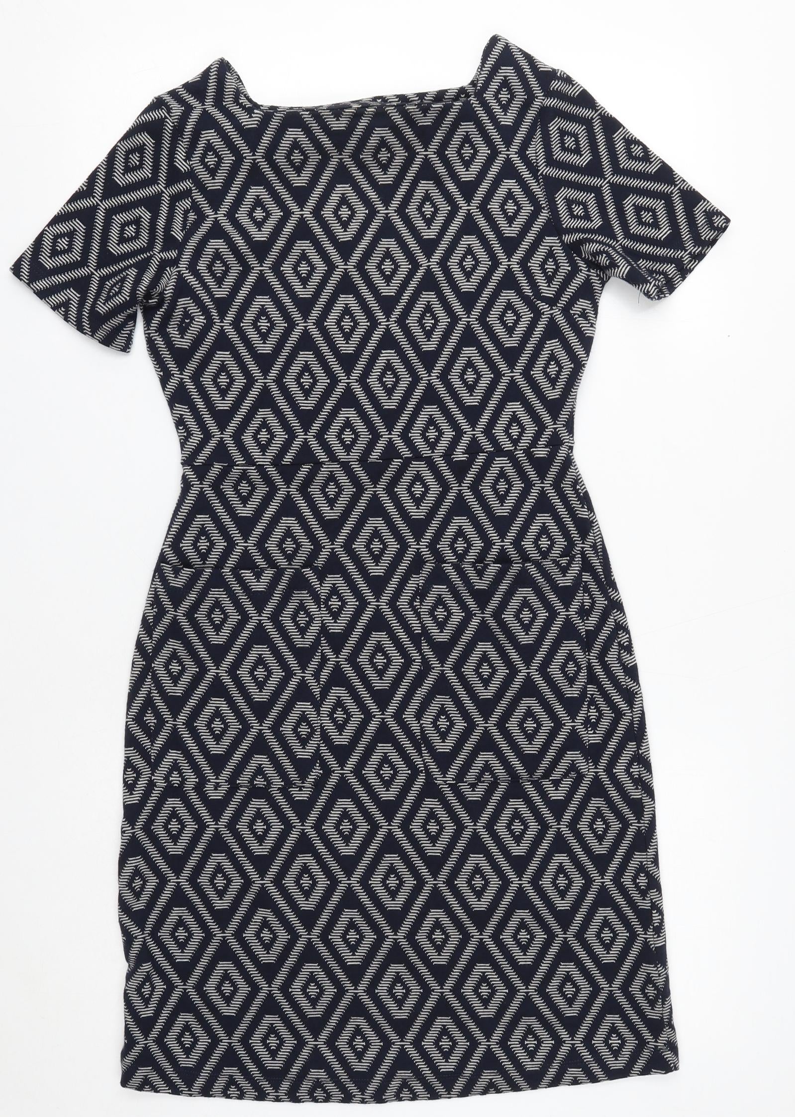 NEXT Womens Blue Geometric Polyester Sheath Size 6 Round Neck Pullover