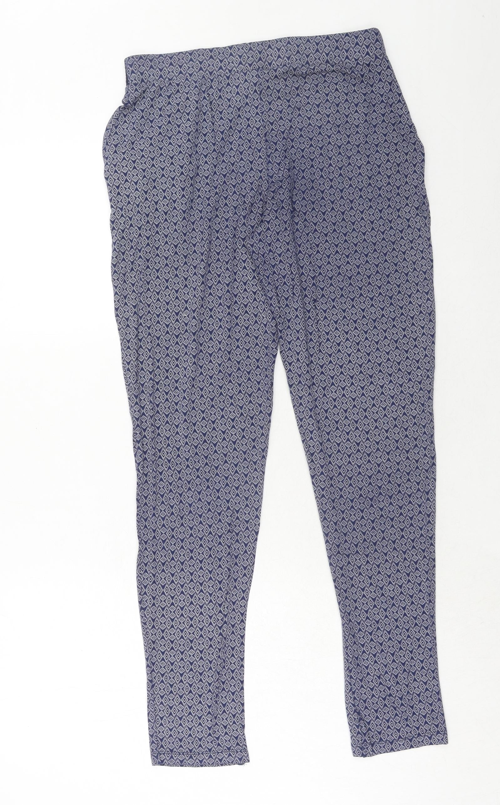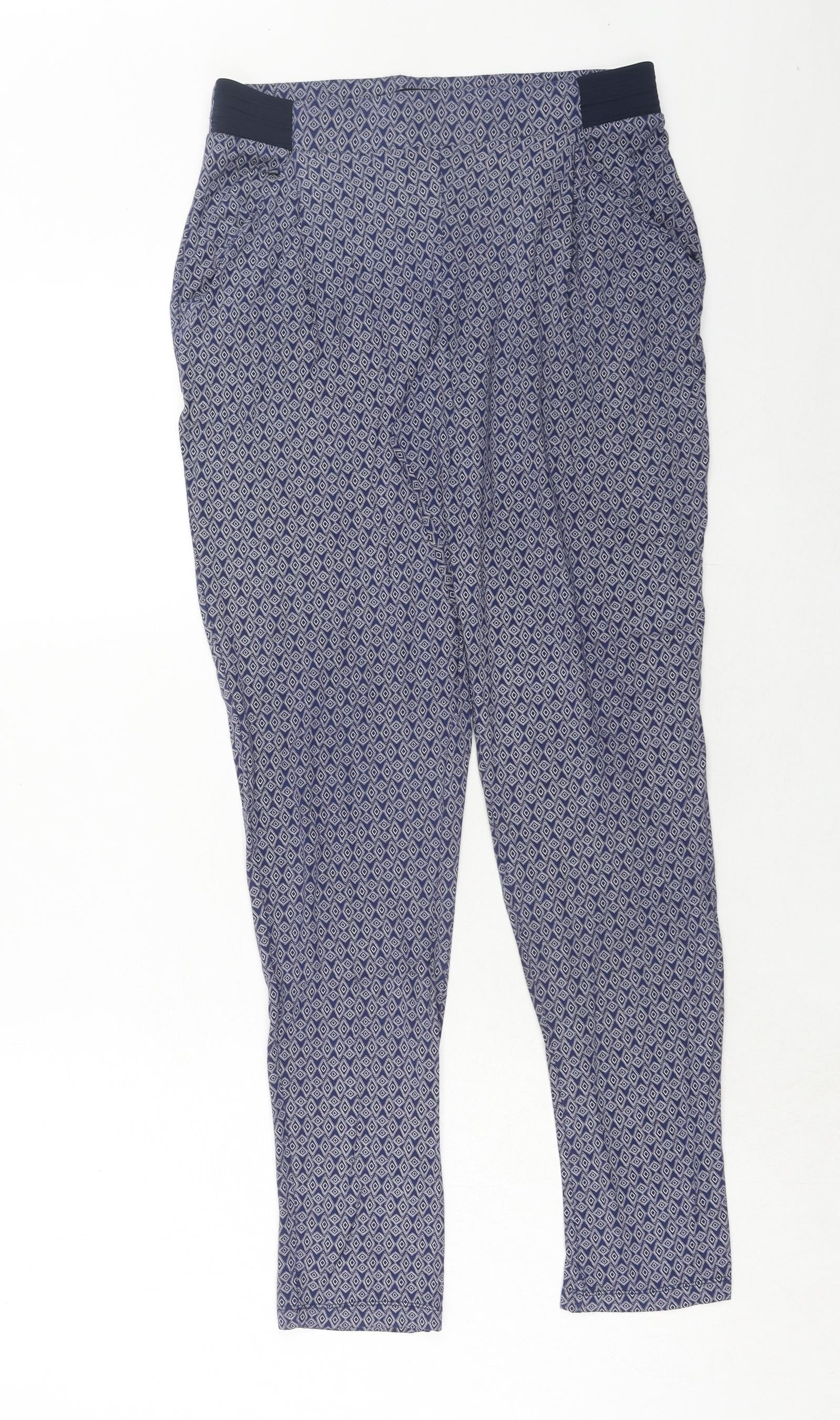 NEXT Womens Blue Geometric Viscose Trousers Size 8 Regular