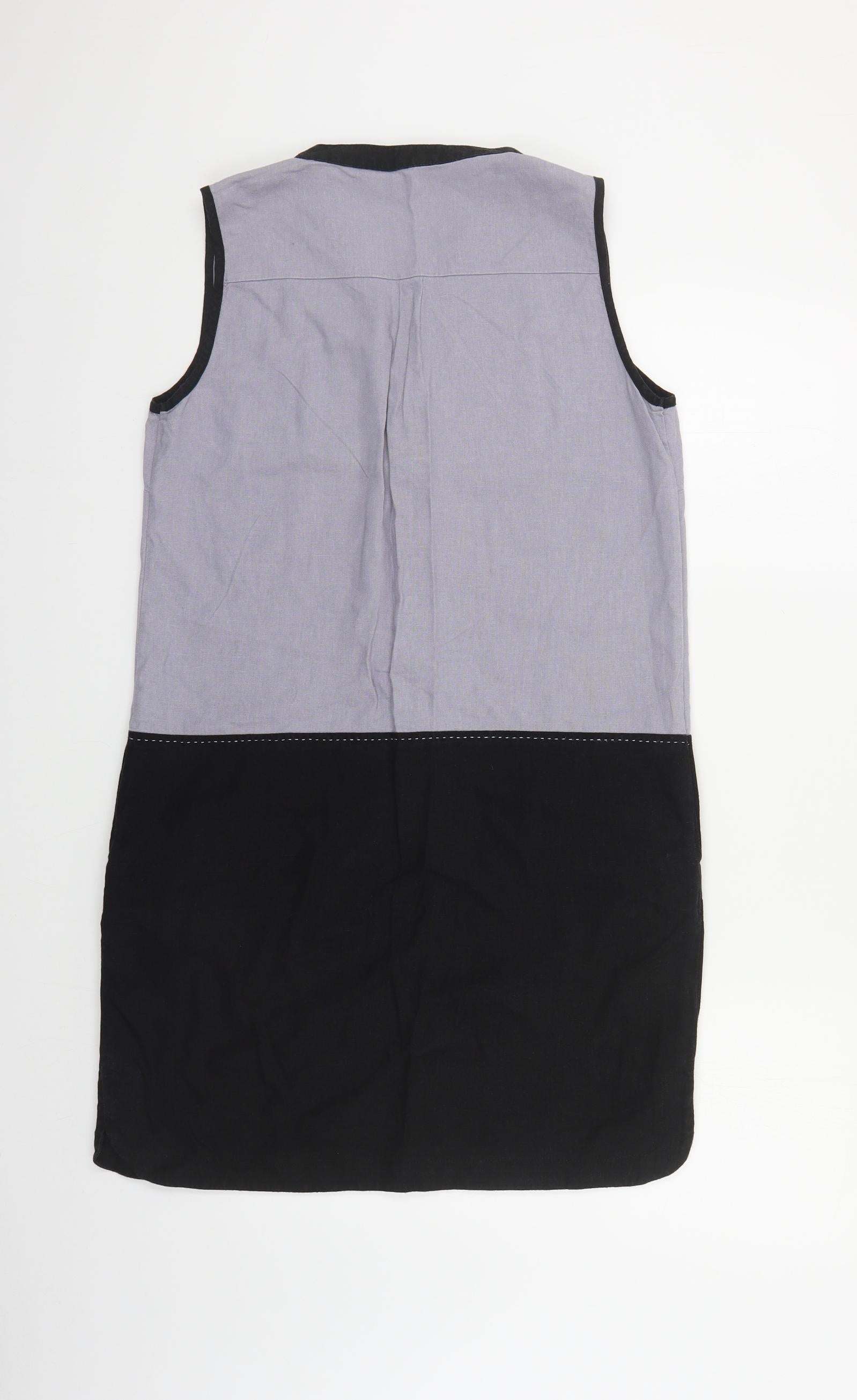NEXT Womens Grey Colourblock Linen Shift Size 10 V-Neck Pullover