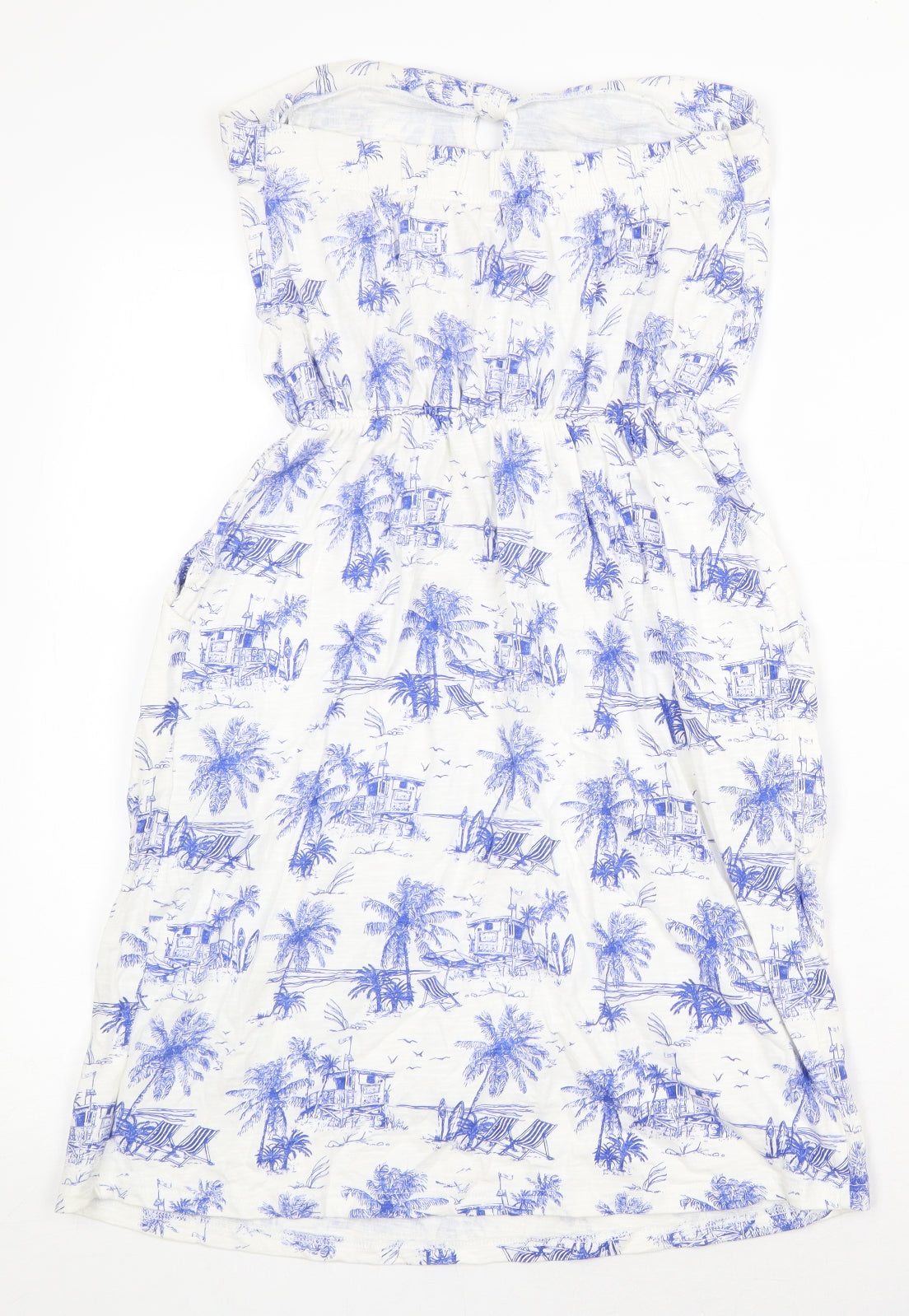 NEXT Womens White Geometric 100% Cotton Mini Size 8 Off the Shoulder Pullover - Beach