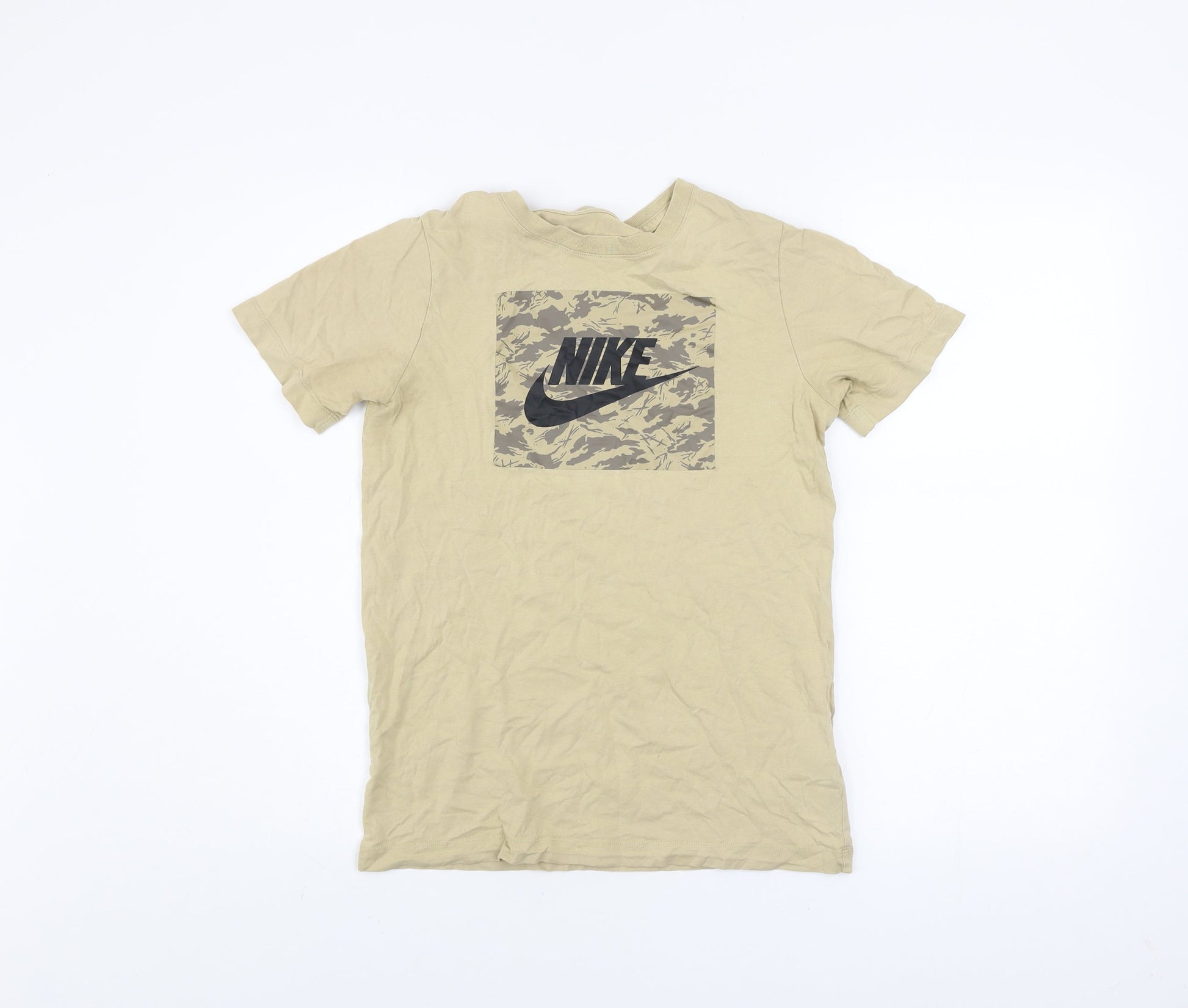 Nike Boys Beige Camo Logo Short Sleeve T-Shirt L 147-158cm Cotton
