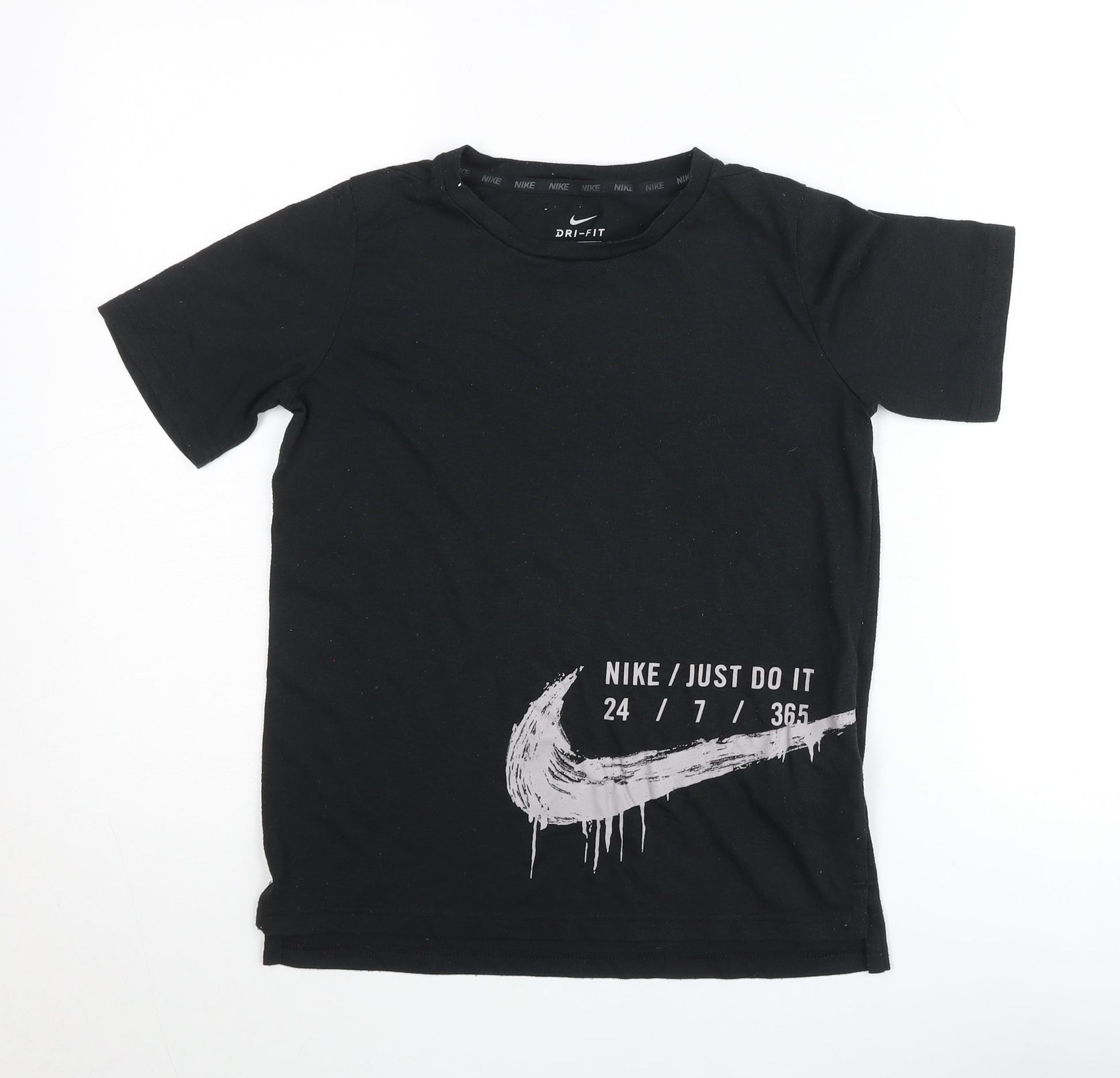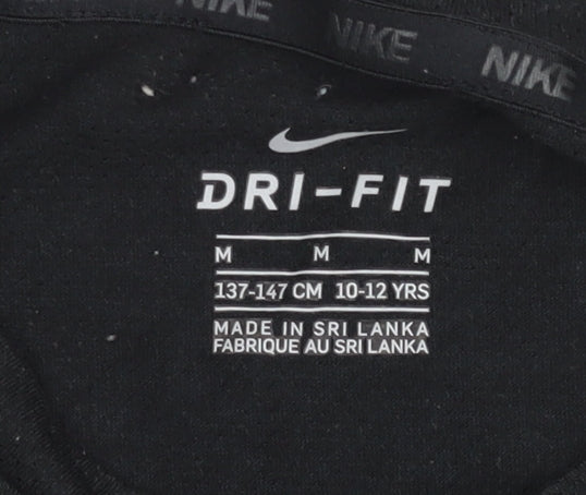 Nike Boys Black Dri-FIT T-Shirt 10-12 Years Short Sleeve Crew Neck Sports Top