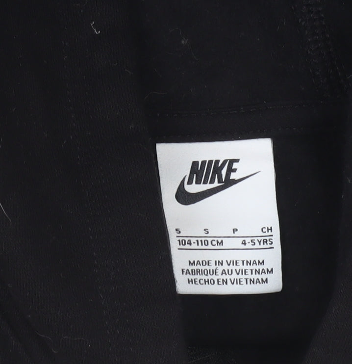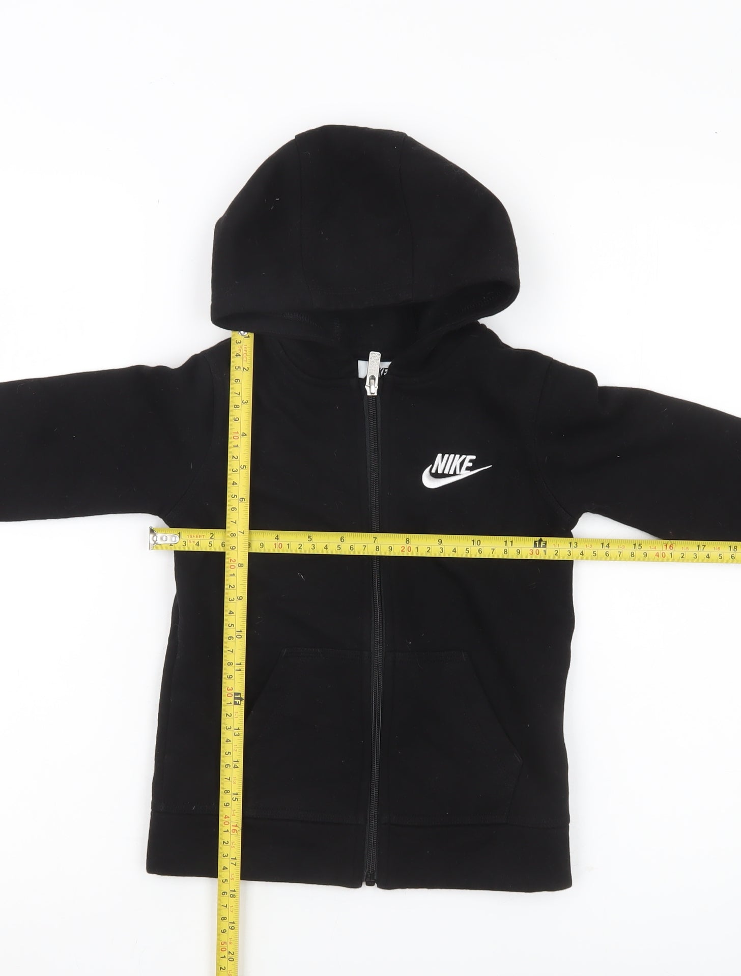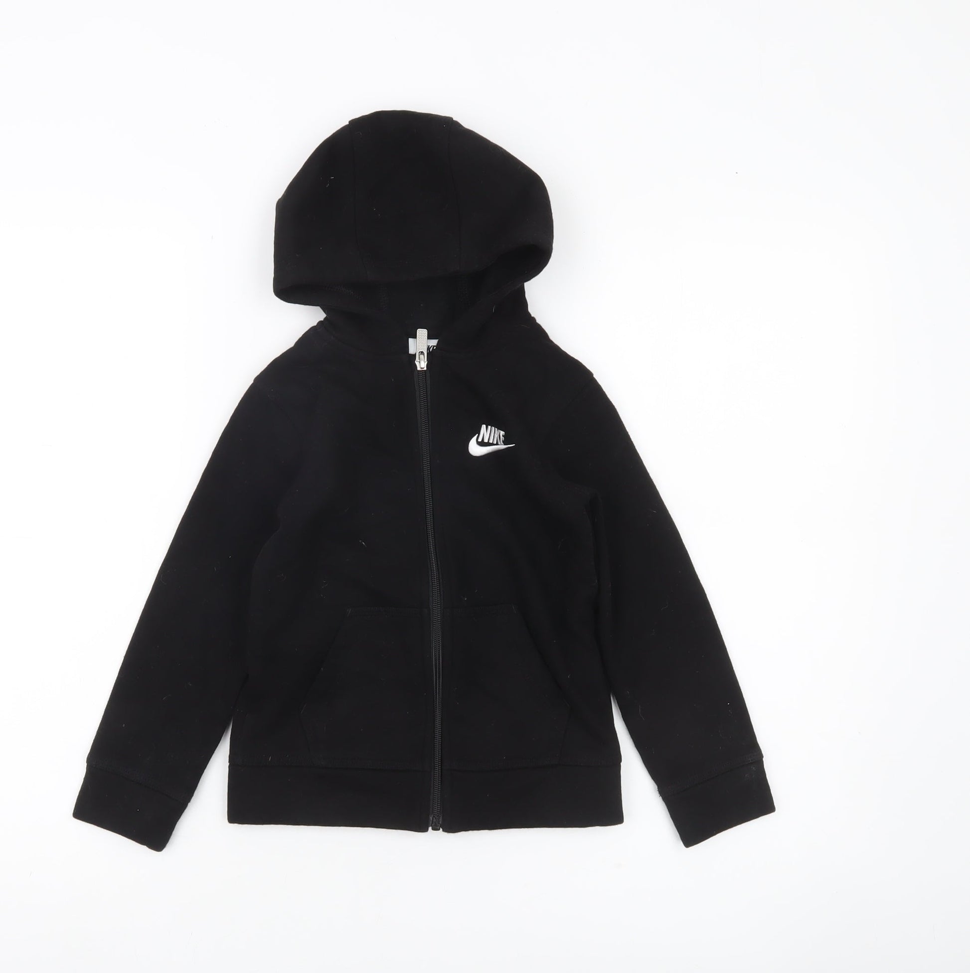 Nike Boys Black Full Zip Hoodie 4-5 Years Cotton Blend Logo