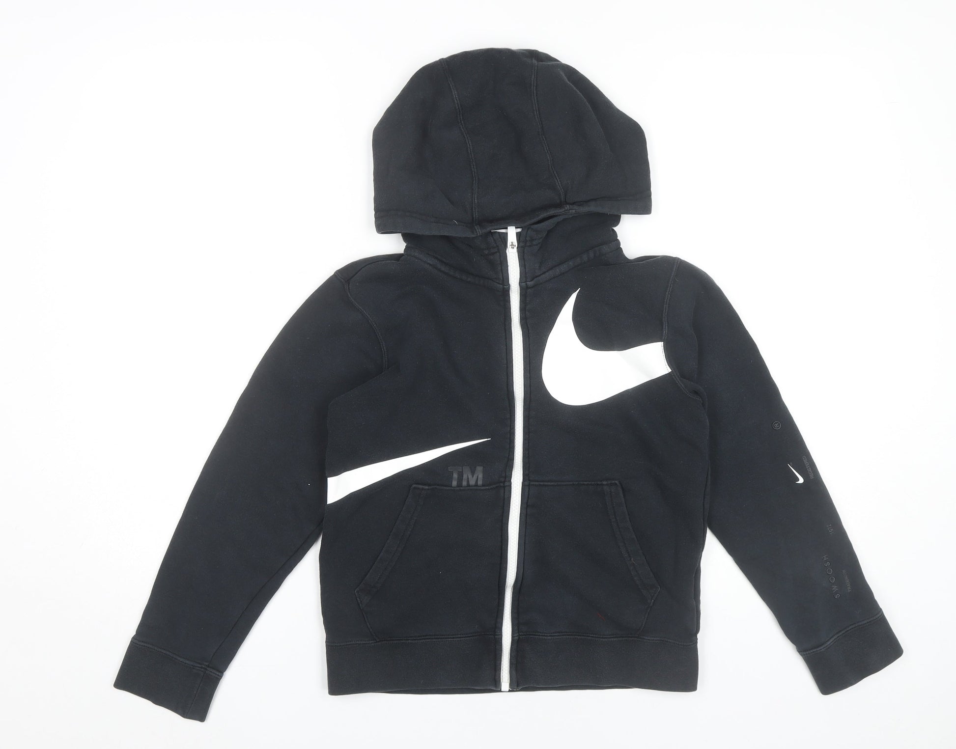 Nike Boys Black Full Zip Hoodie Size 146cm Sports Graphic Hooded Top