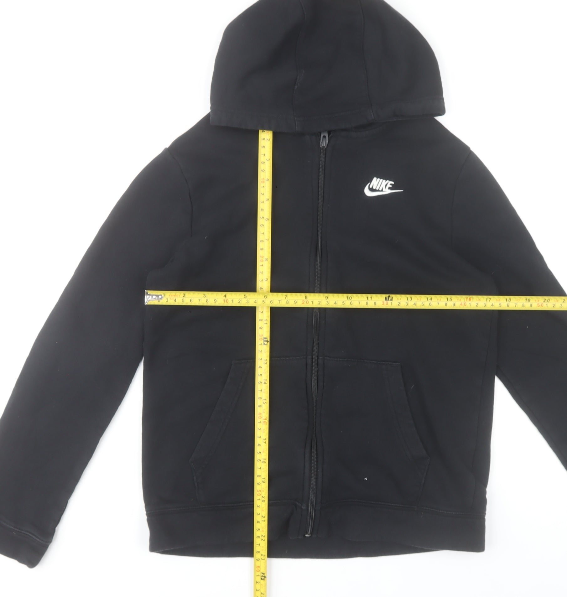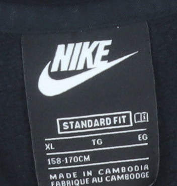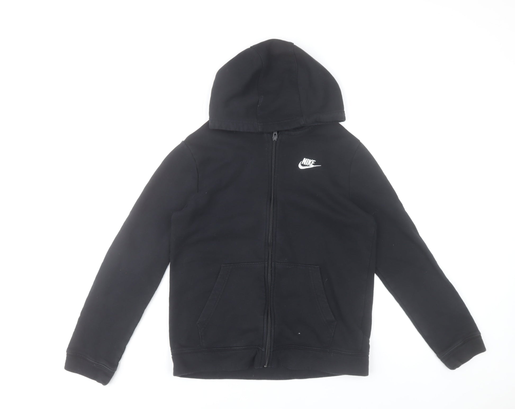 Nike Boys Black Full Zip Hoodie XL 158-170cm Cotton Blend Hooded Sweatshirt