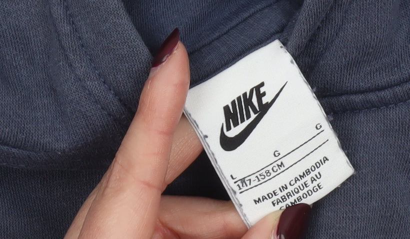 Nike Boys Blue Pullover Hoodie Large 147-158cm Cotton Logo Sportswear