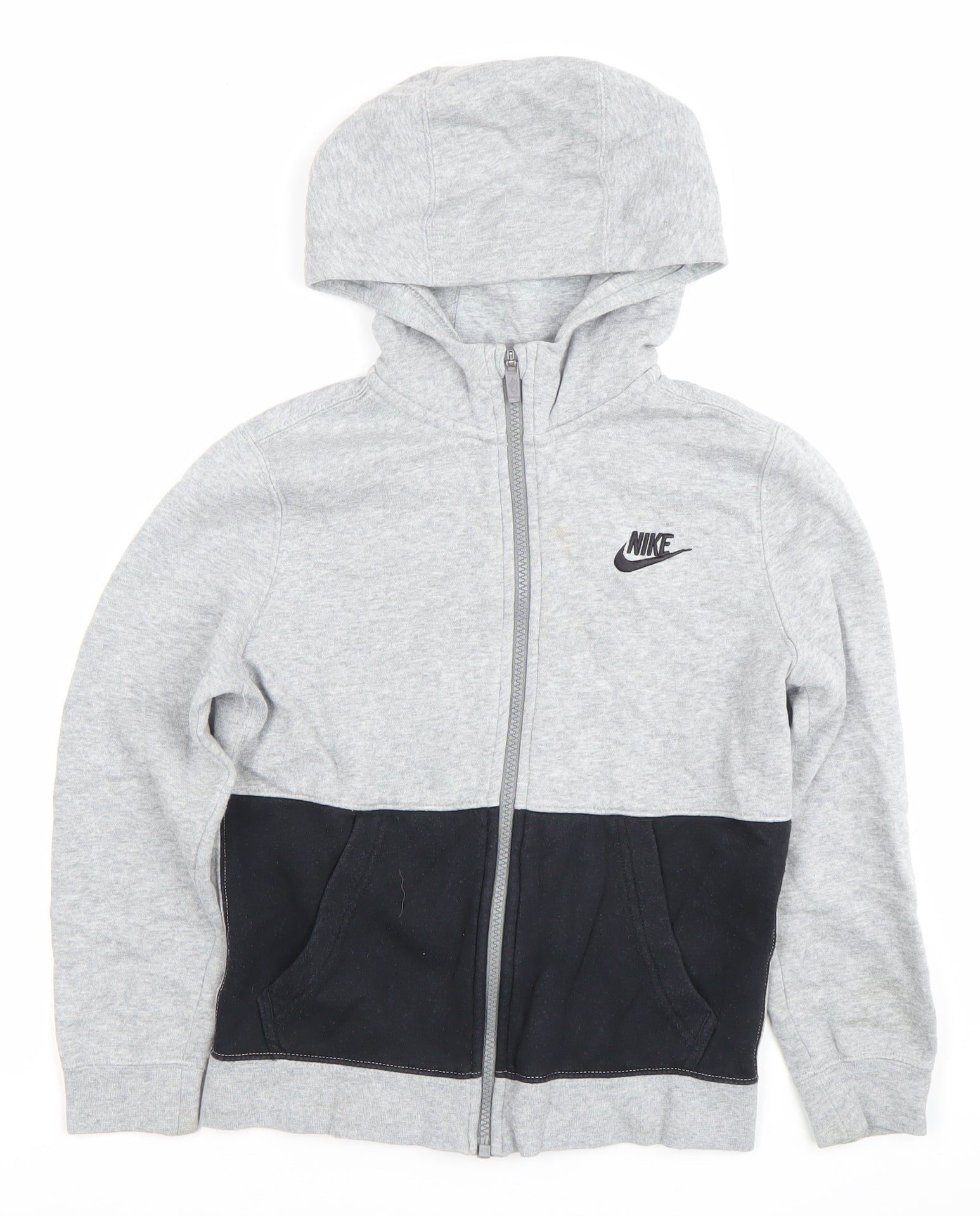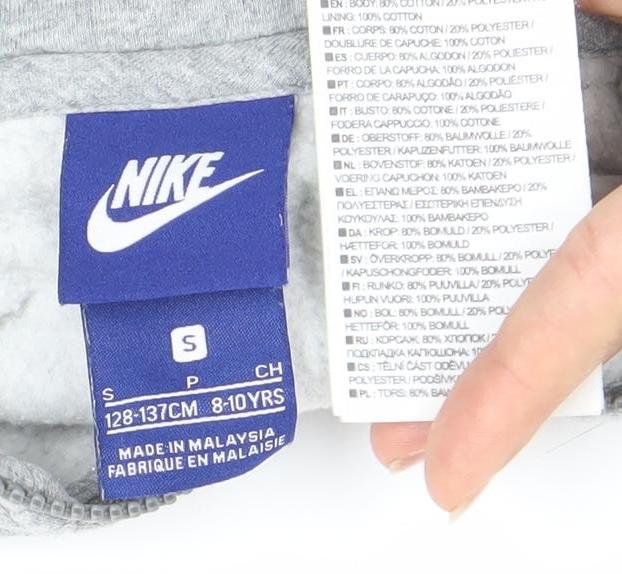Nike Boys Grey Black Full Zip Hoodie 8-10 Years Logo Sportswear