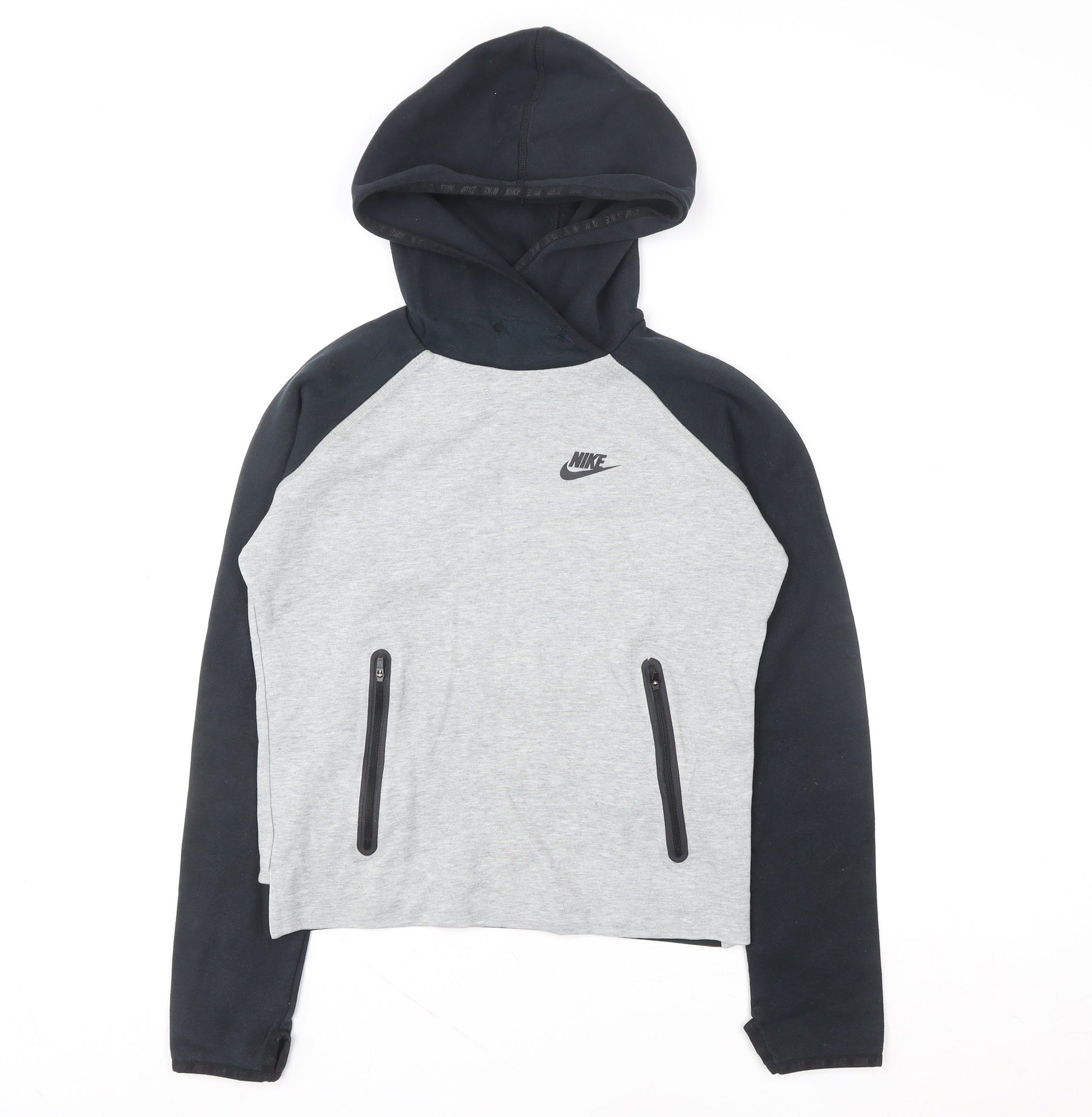 Nike Boys Grey & Black Pullover Hoodie S Regular Fit Logo Sweatshirt