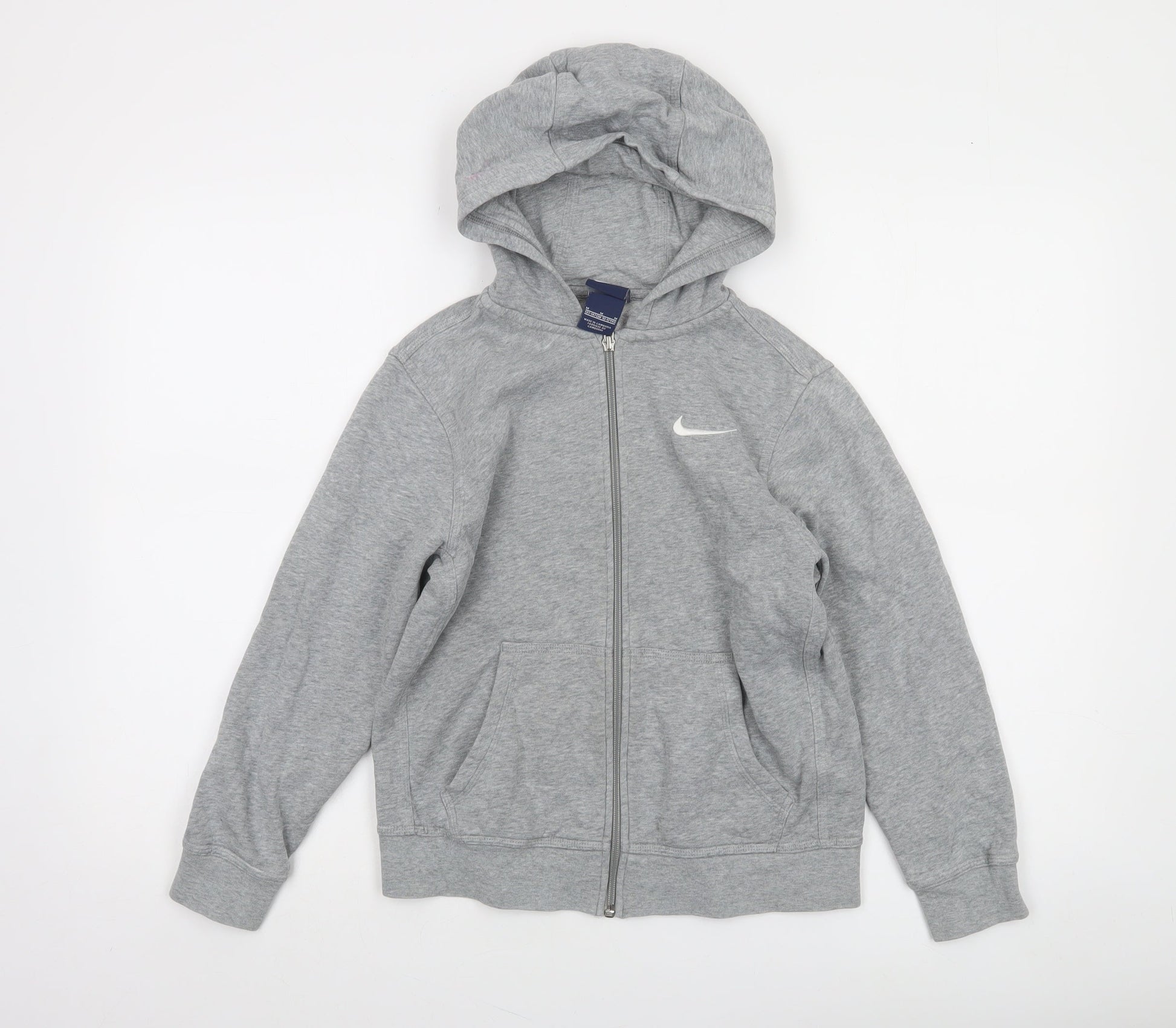 Nike Boys Grey Full Zip Hoodie M 10-12 Years Cotton Blend Hooded Sweatshirt