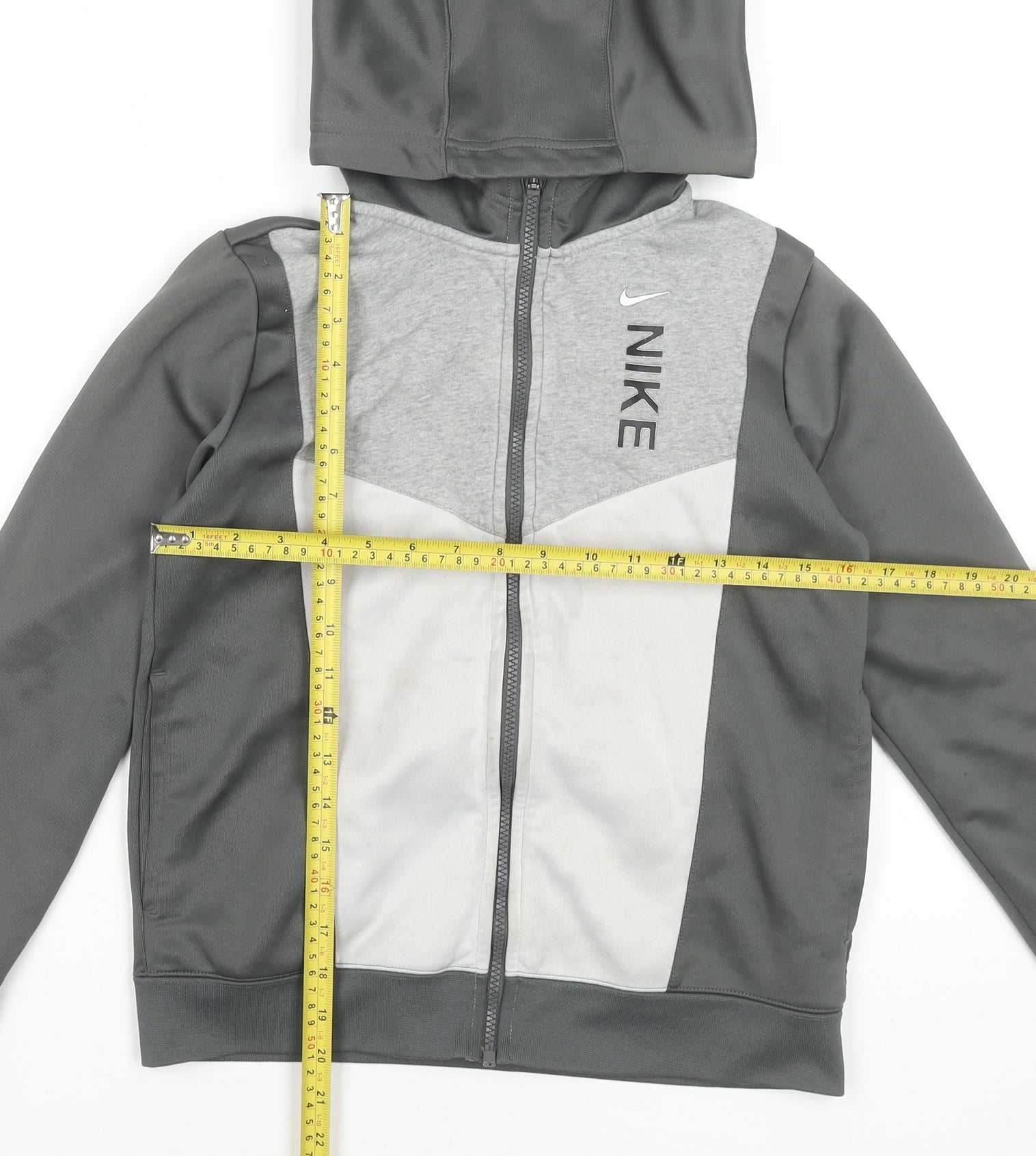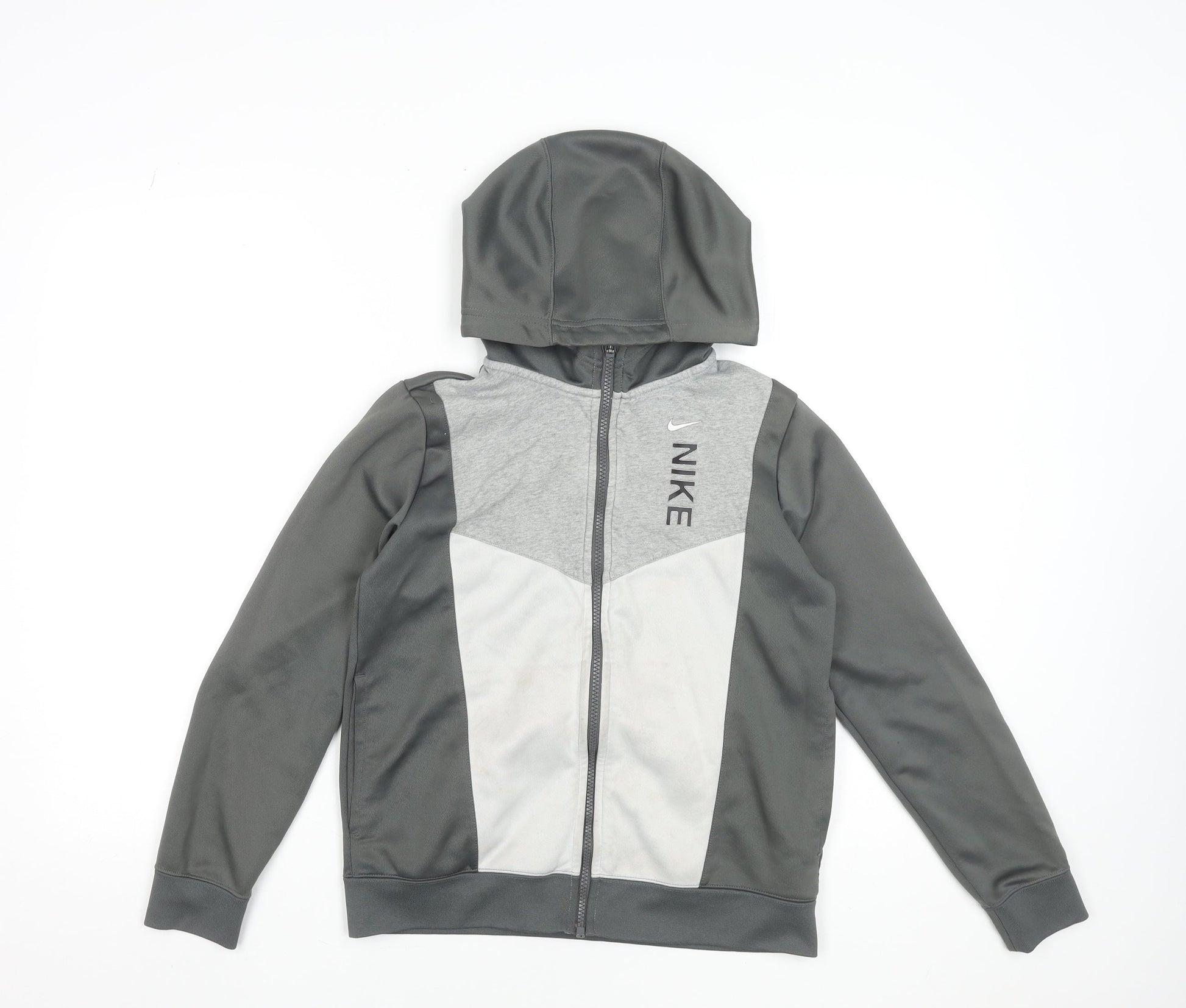 Nike Boys Grey Full Zip Hoodie Size L Colourblock Sportswear