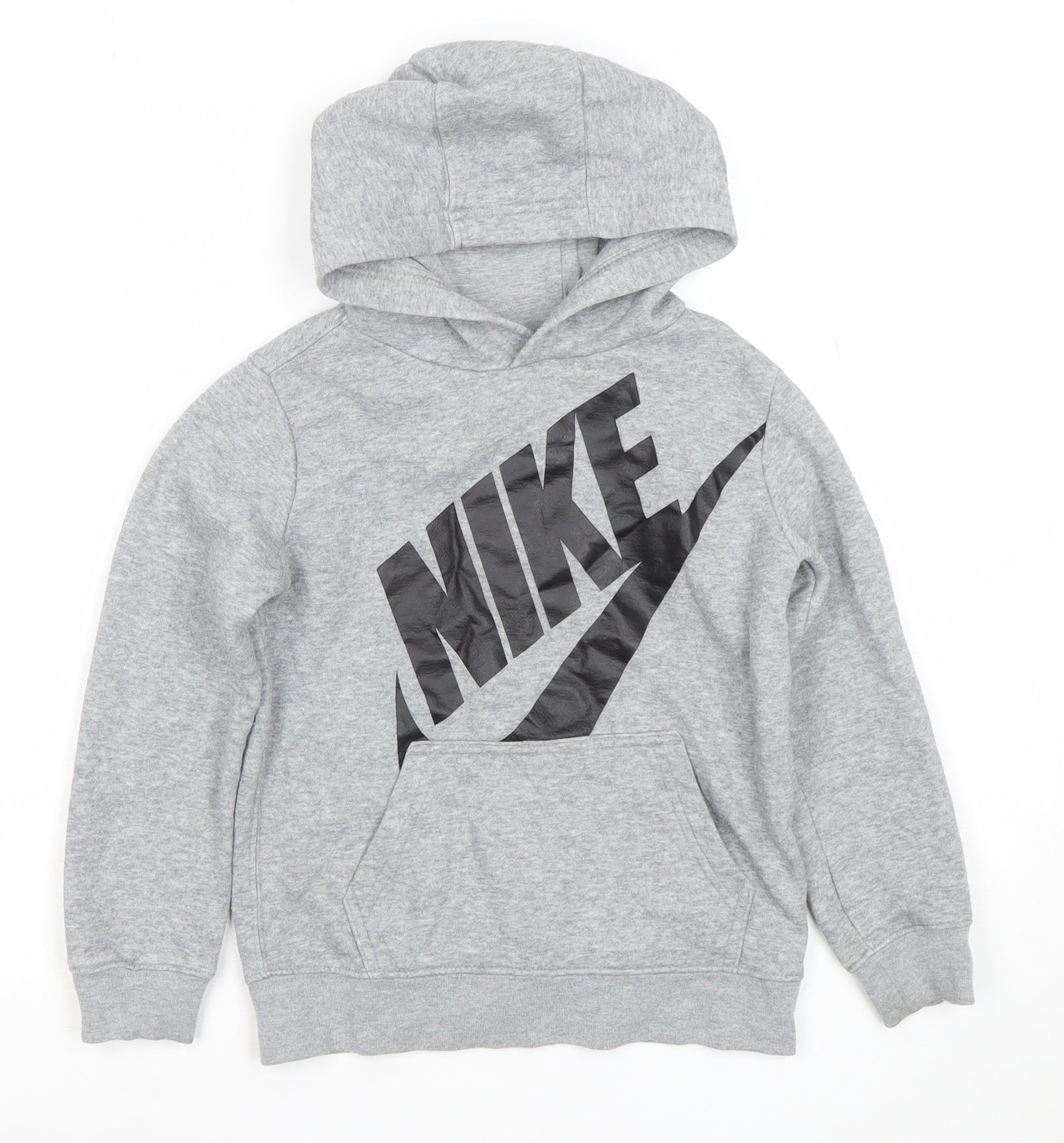 Nike Boys Grey Pullover Hoodie Size M 5-6 Years Cotton Blend Logo Print