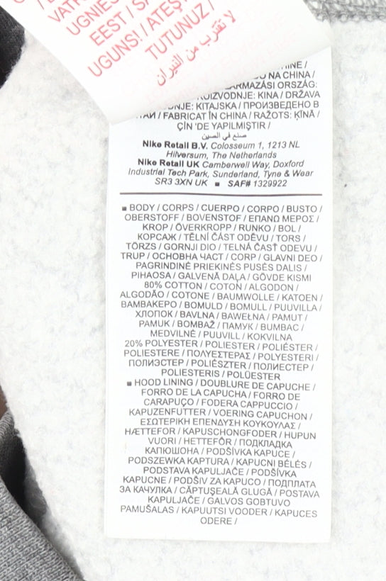 Nike Boys Grey Pullover Hoodie XL 158-170cm Cotton Blend Logo Sweatshirt