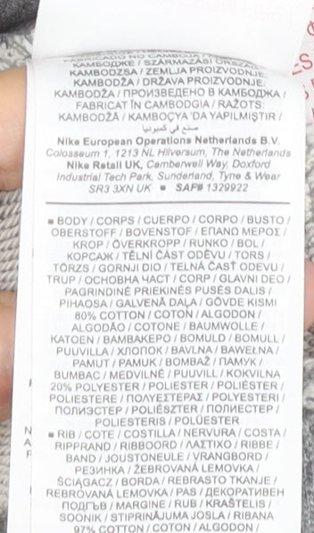 Nike Boys Grey XL Full Zip Hoodie Sweatshirt Jacket Cotton Blend