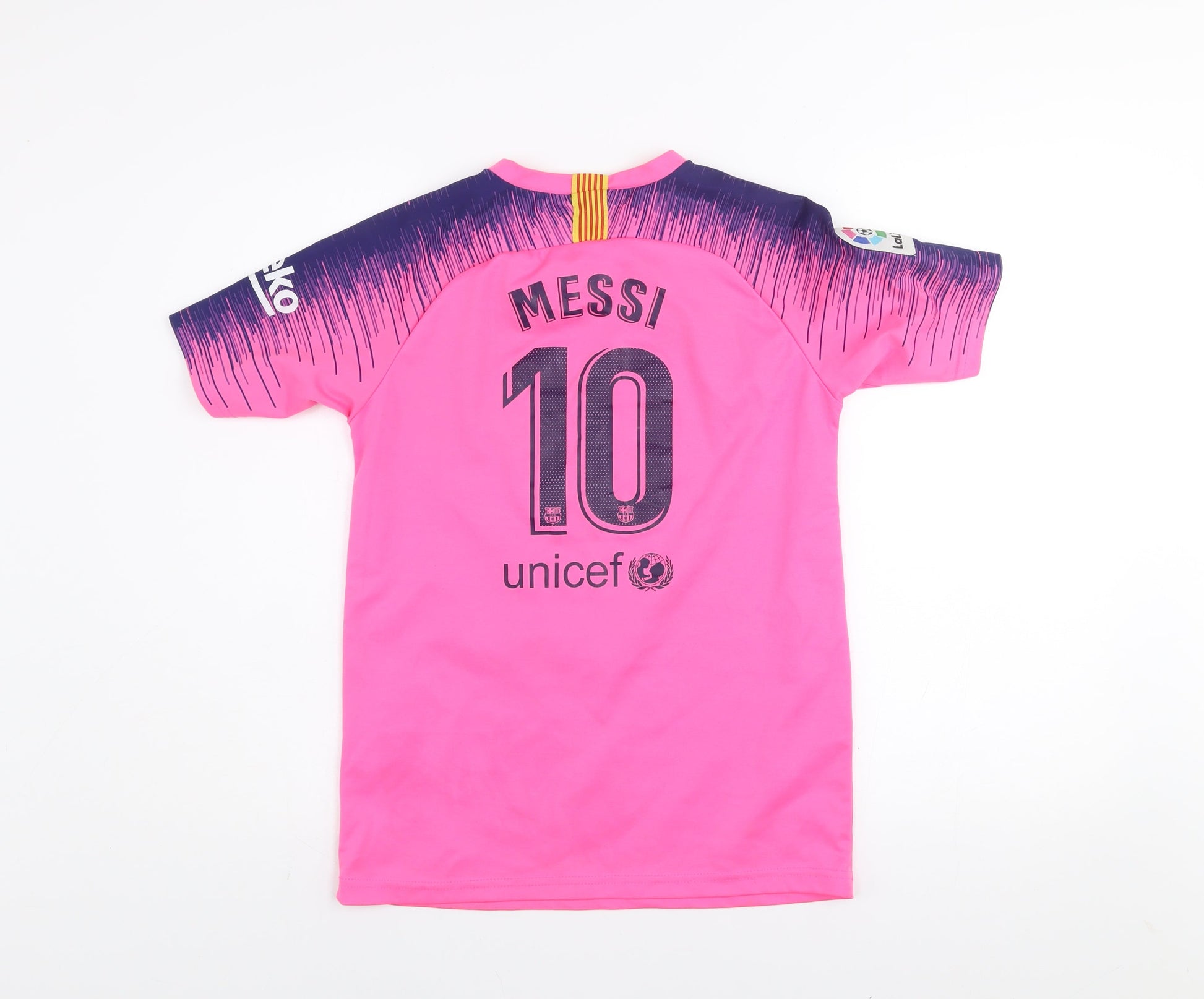 Nike Boys Pink Barcelona Messi 10 Dri-Fit Short Sleeve Football Jersey 176