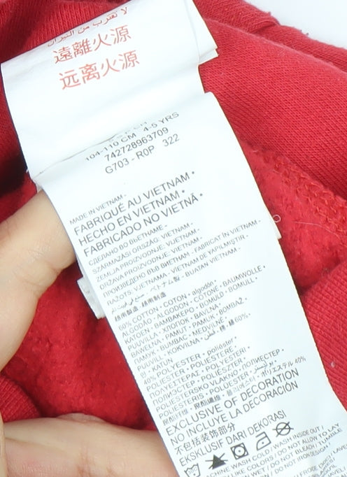 Nike Boys Red Pullover Hoodie 4-5 Years Cotton Blend Logo Graphic