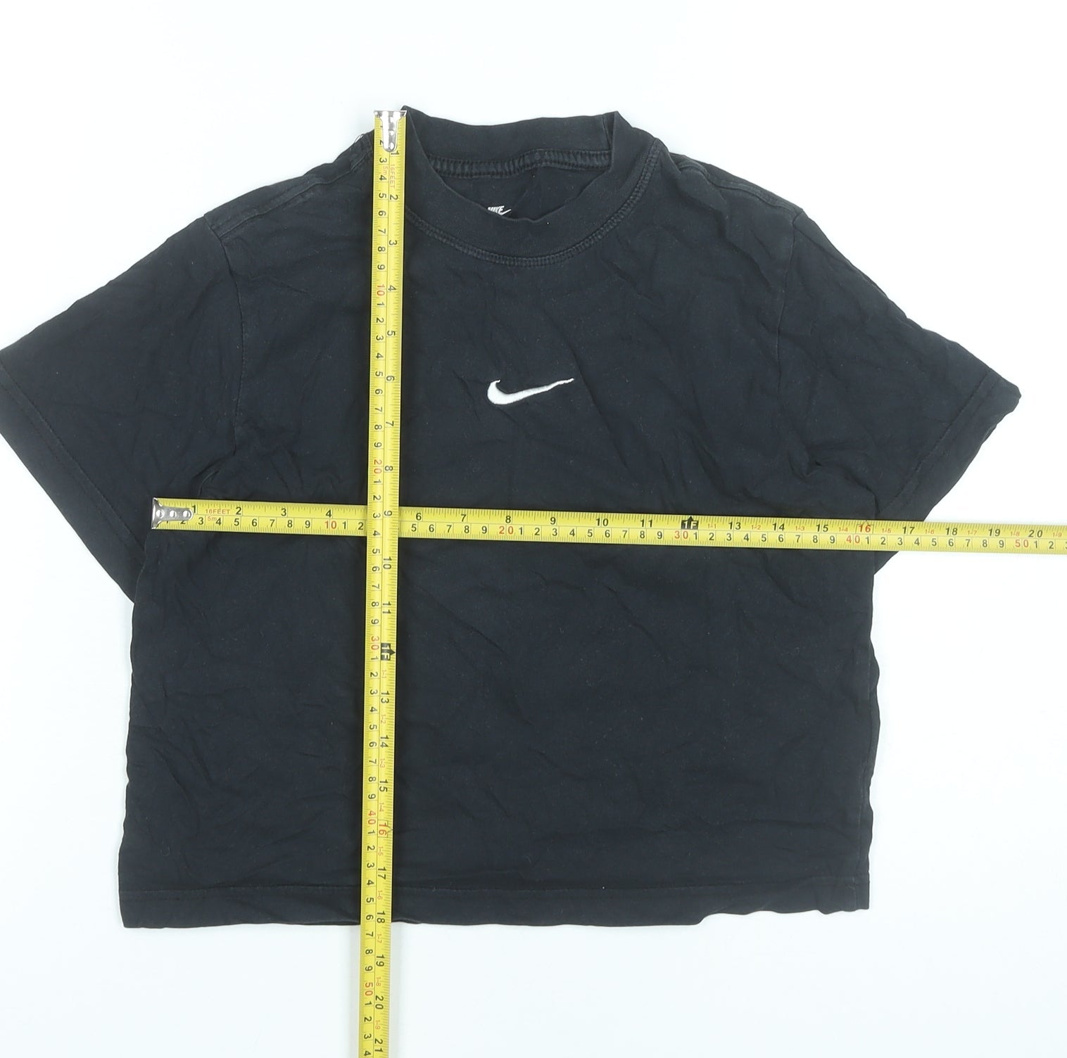 Nike Girls Black Cotton T-Shirt Loose Fit Short Sleeve Size 146 Logo
