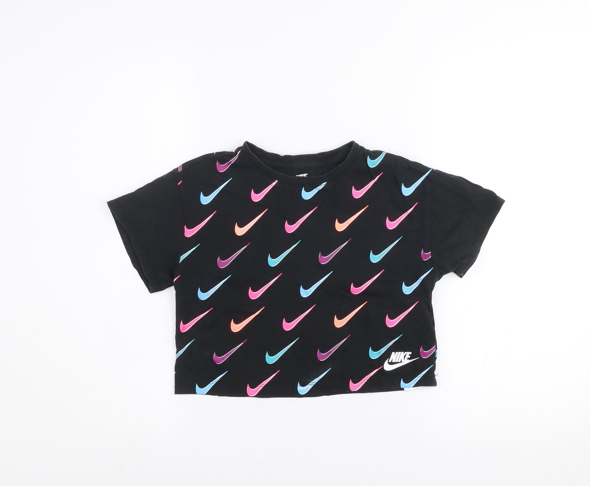 Nike Girls Black Cropped Logo T-Shirt 6-7 Years Cotton Short Sleeve