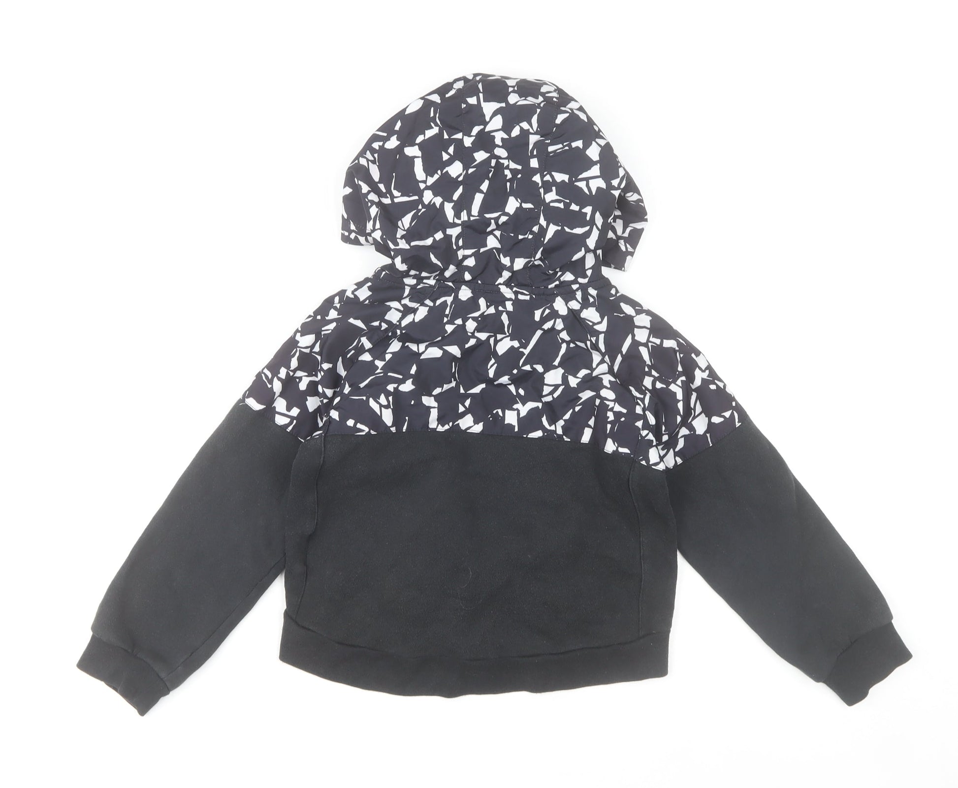 Nike Girls Black Geometric Puffer Jacket 6-7 Years Hooded Zip Coat