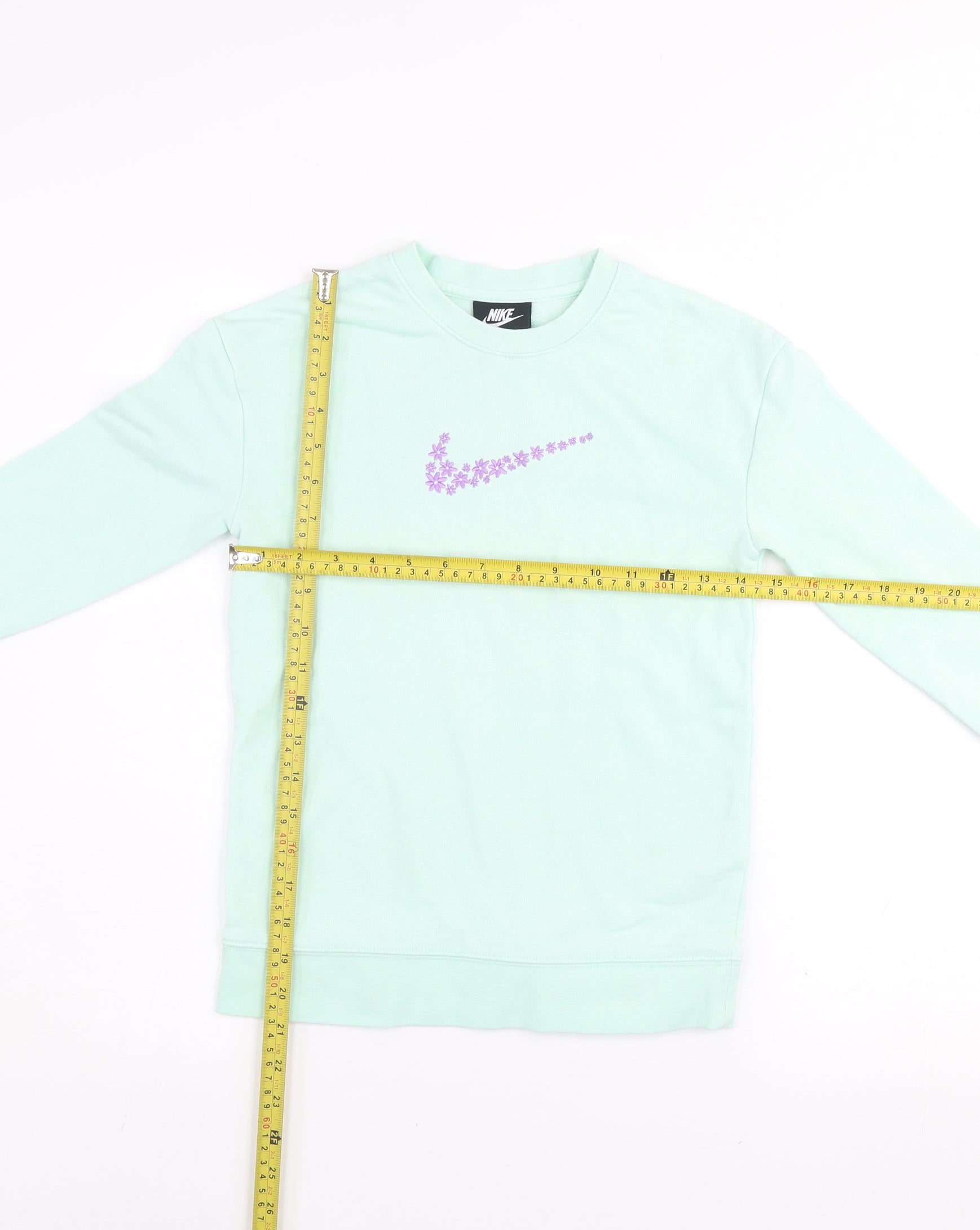 Nike Girls Green Floral Logo Sweatshirt 6-7 Years Pullover Crew Neck