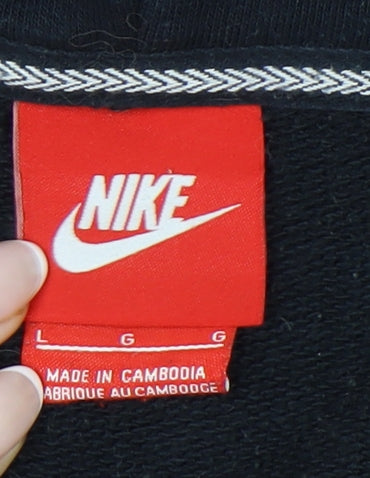 Nike Men’s Black Full Zip Hoodie L Logo Sportswear Cotton Blend