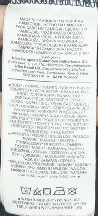 - Material Breakdown: 100% Polyester 100% Nylon (Pockets)