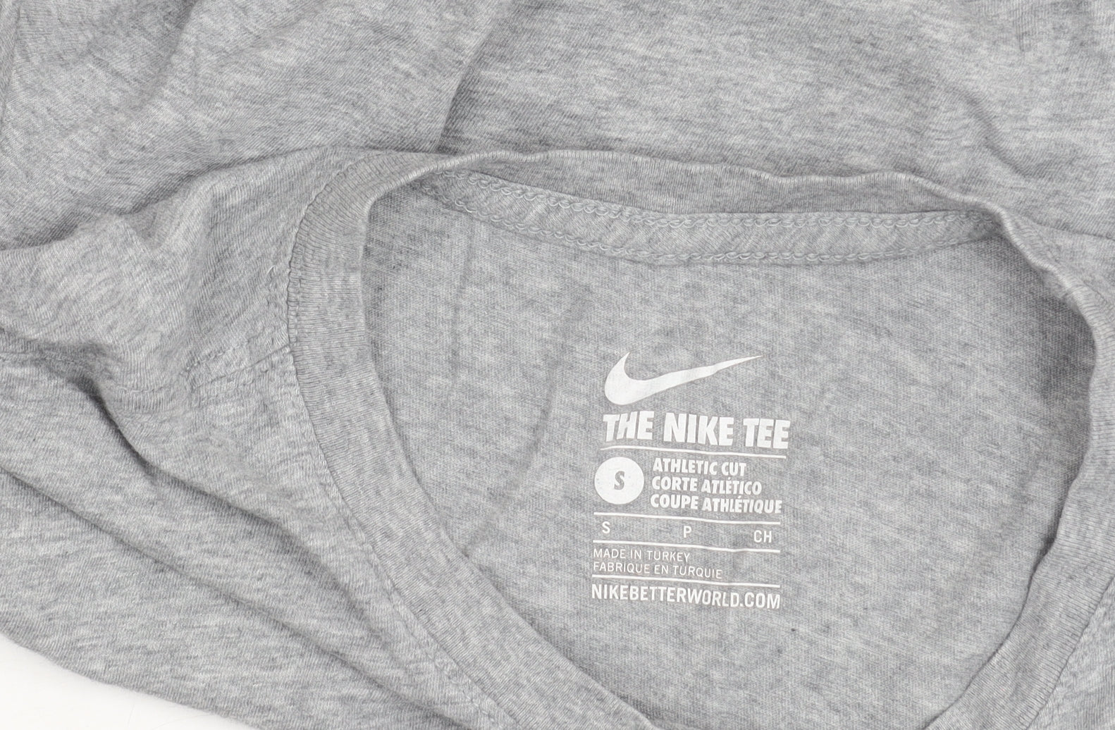 Nike Men’s Grey Athletic Fit Cotton T-Shirt Size S Crew Neck Sports Top