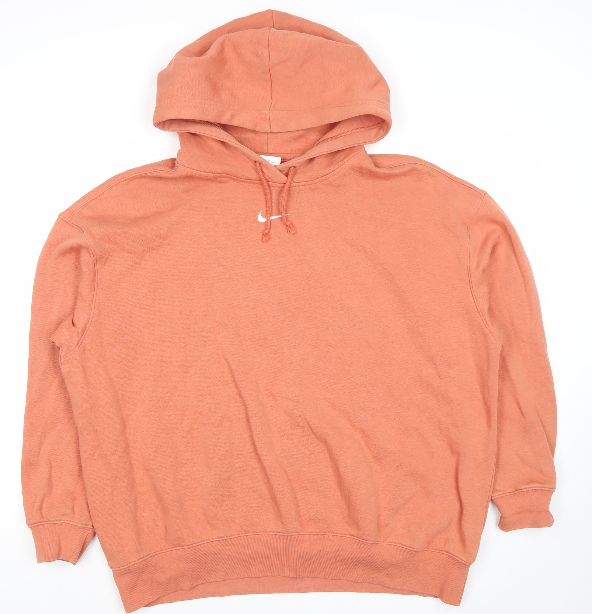Nike Men’s Orange Pullover Hoodie Size L Regular Fit Logo