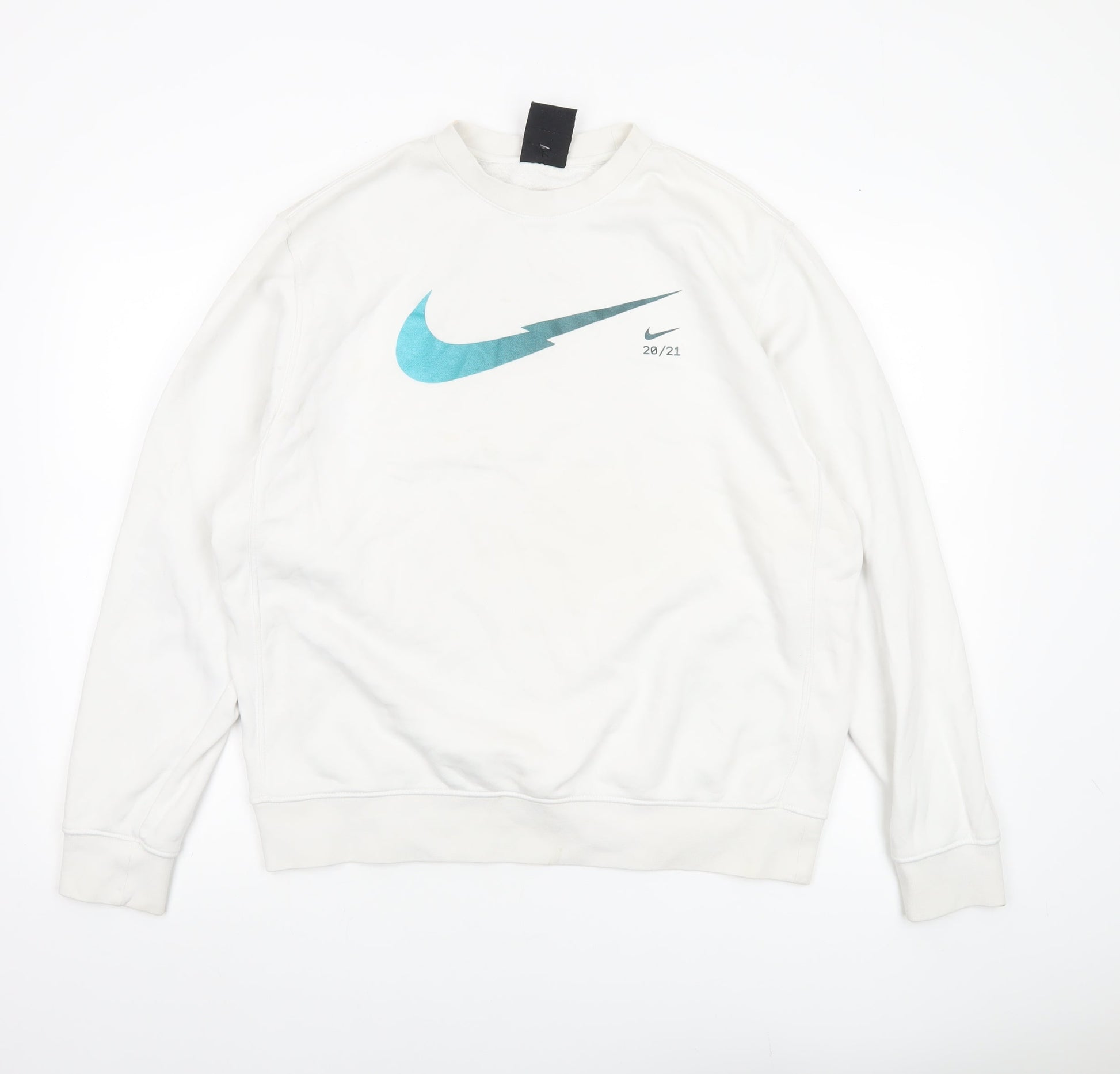Nike Men’s White Graphic Pullover Sweatshirt Size M Crew Neck Sportswear