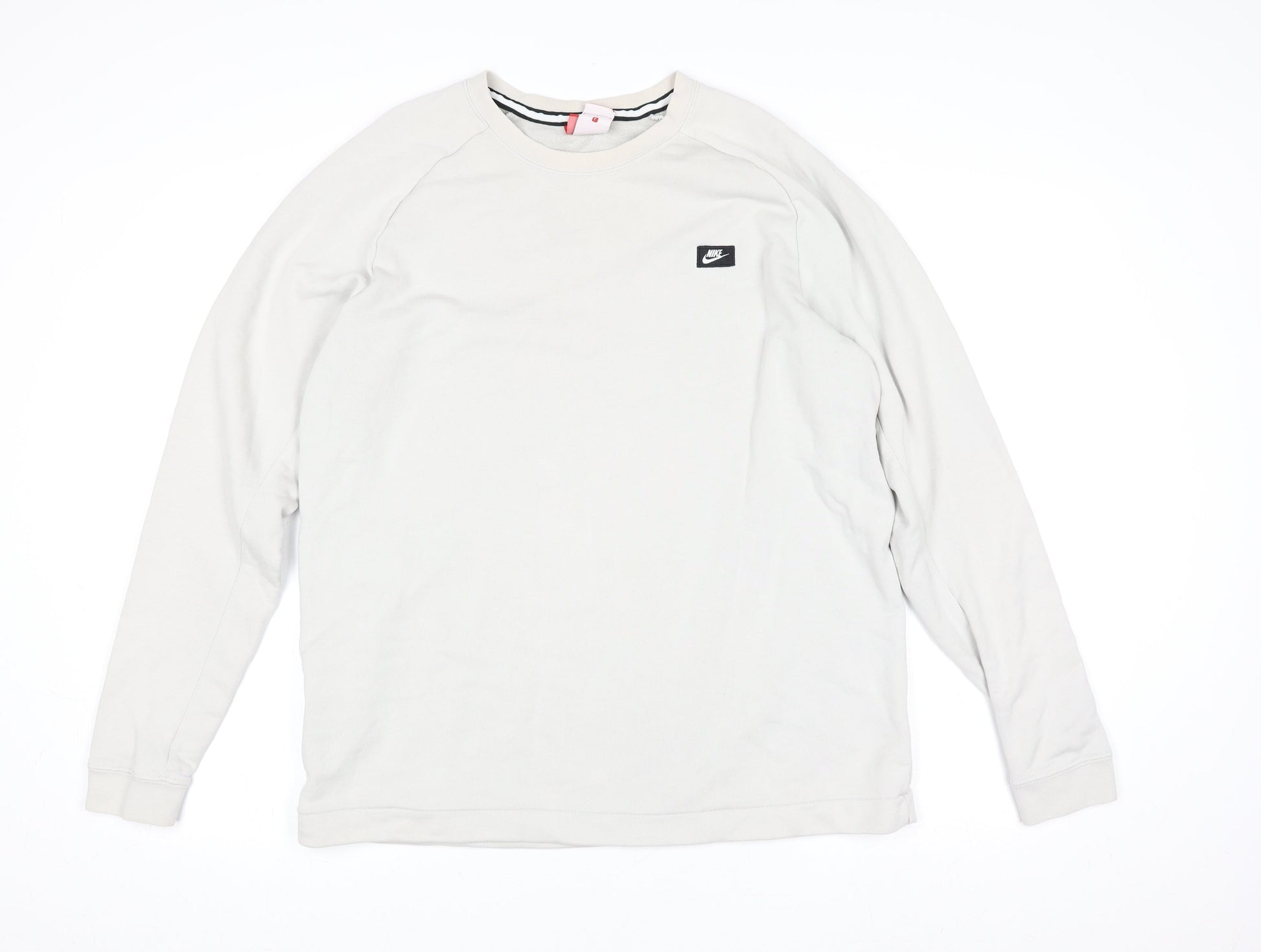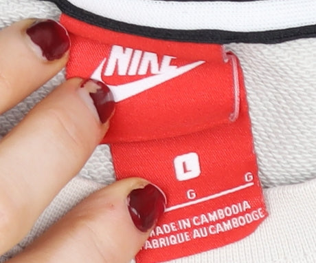 Nike Men's Beige Cotton Blend Crew Neck Sweatshirt L Regular Fit