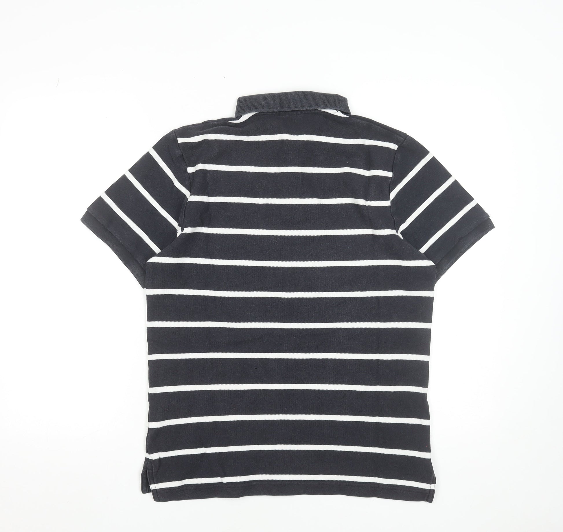 Nike Men's Black Striped Cotton Polo Shirt Size L Regular Fit