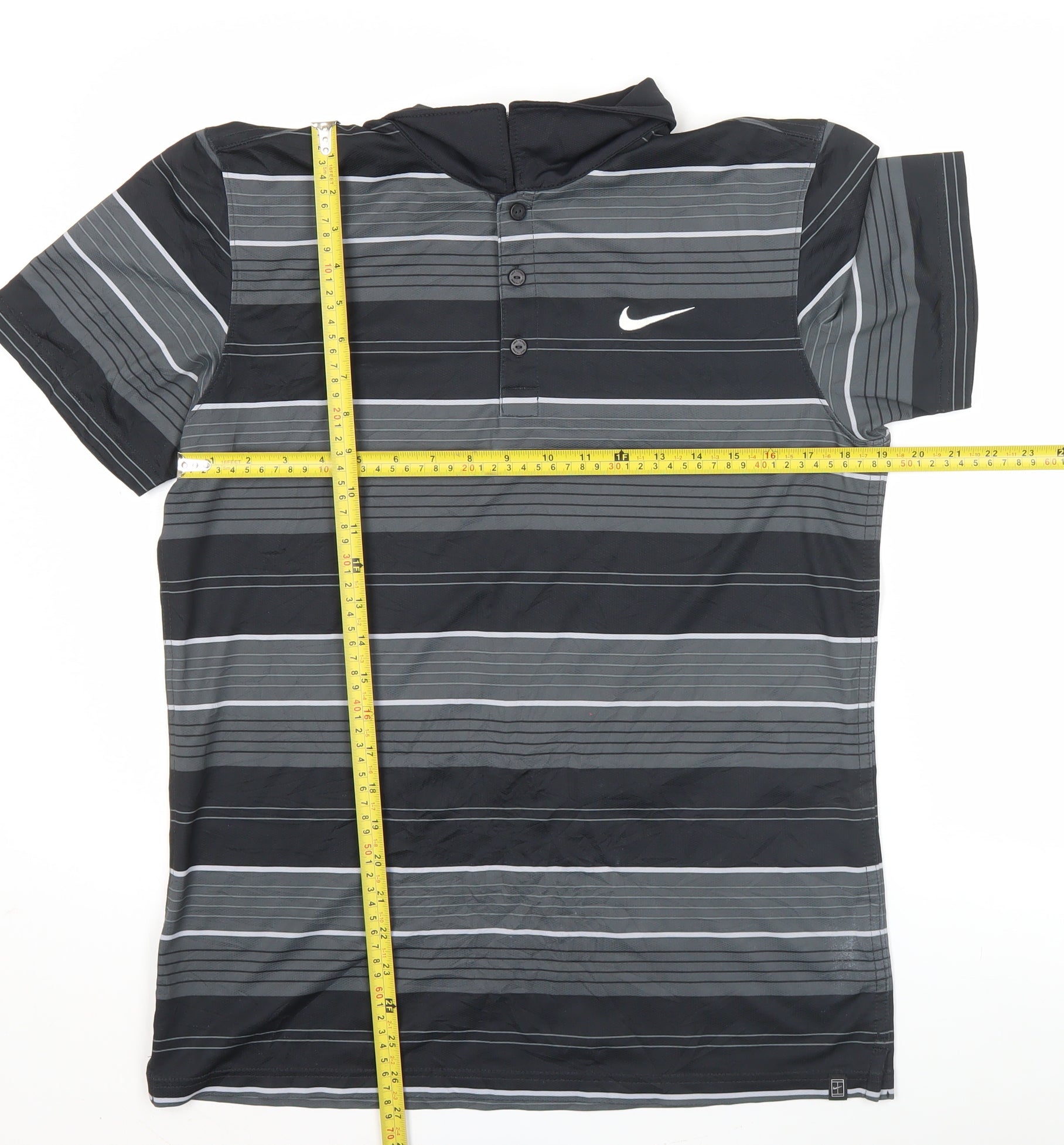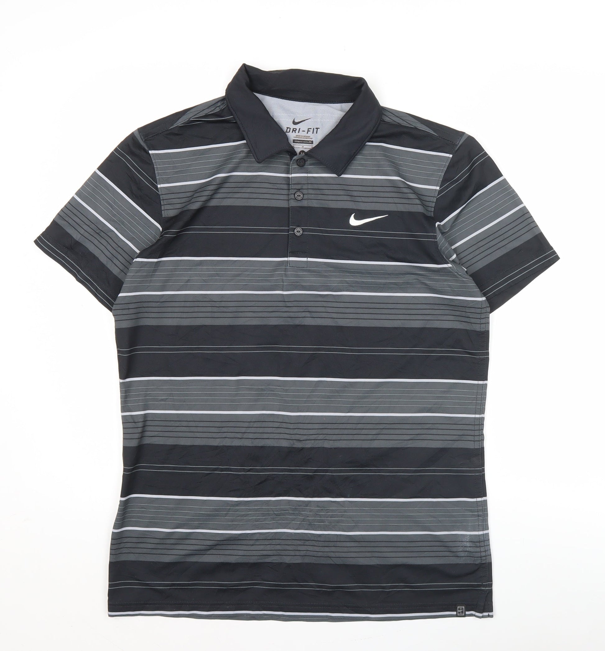 Nike Men's Black Striped Polo Shirt M Dri-Fit Golf Activewear