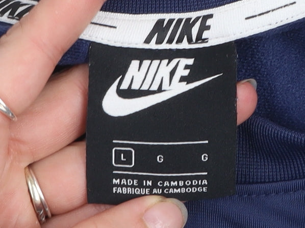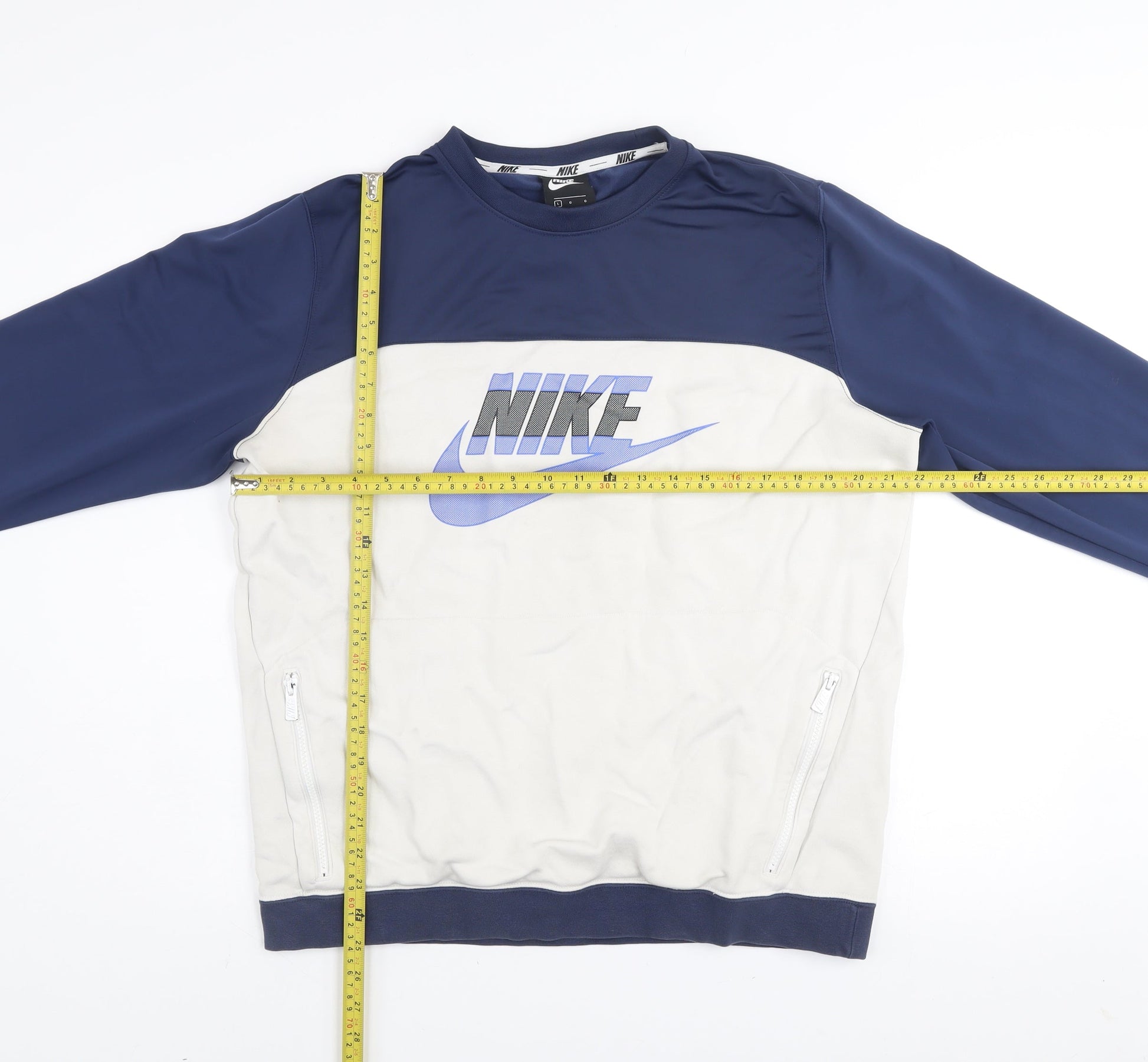 Nike Men's Blue Beige Pullover Sweatshirt L Crew Neck Logo Zip Pockets