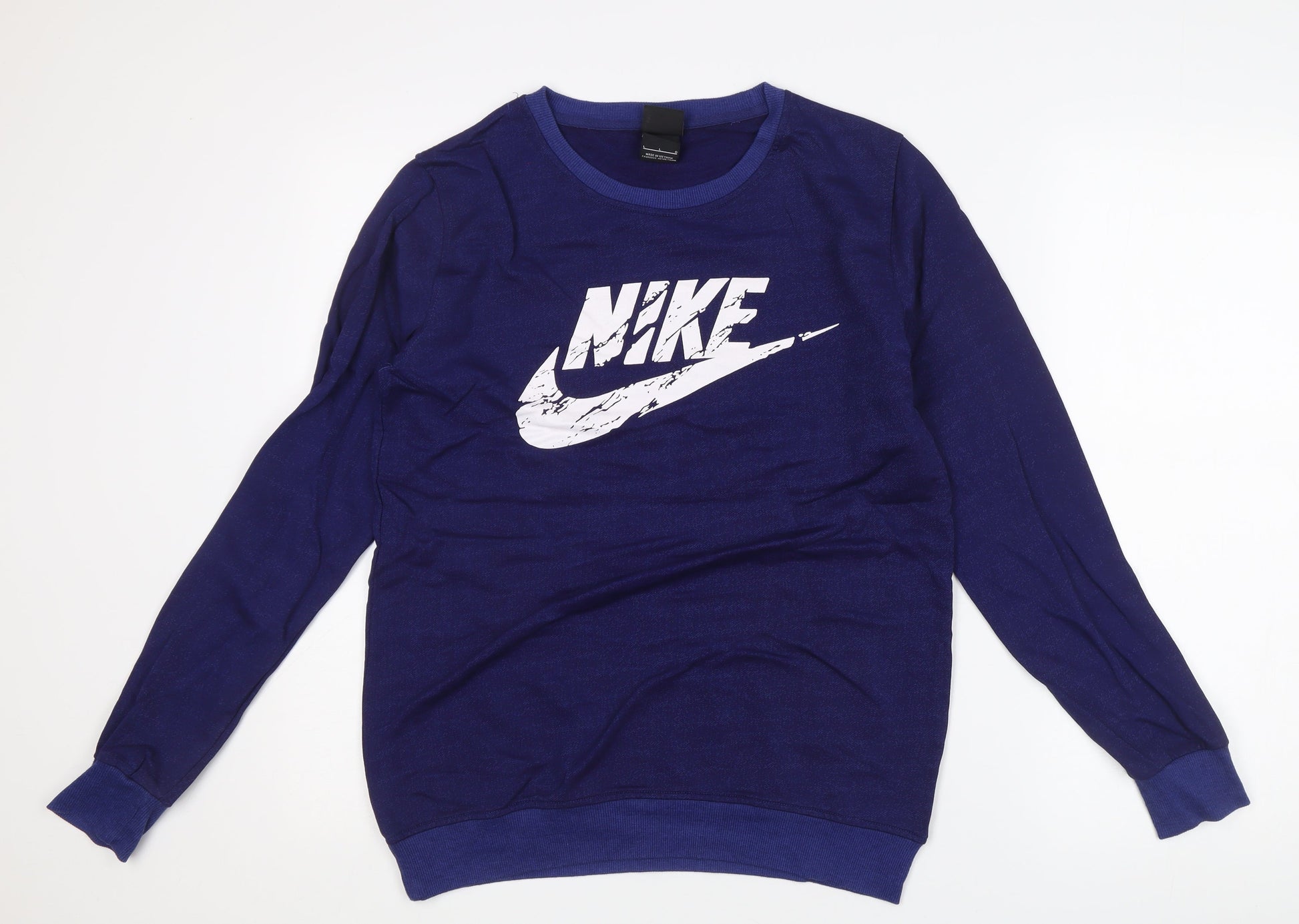 Nike Mens Blue L Pullover Sweatshirt Crew Neck Logo Graphic Print