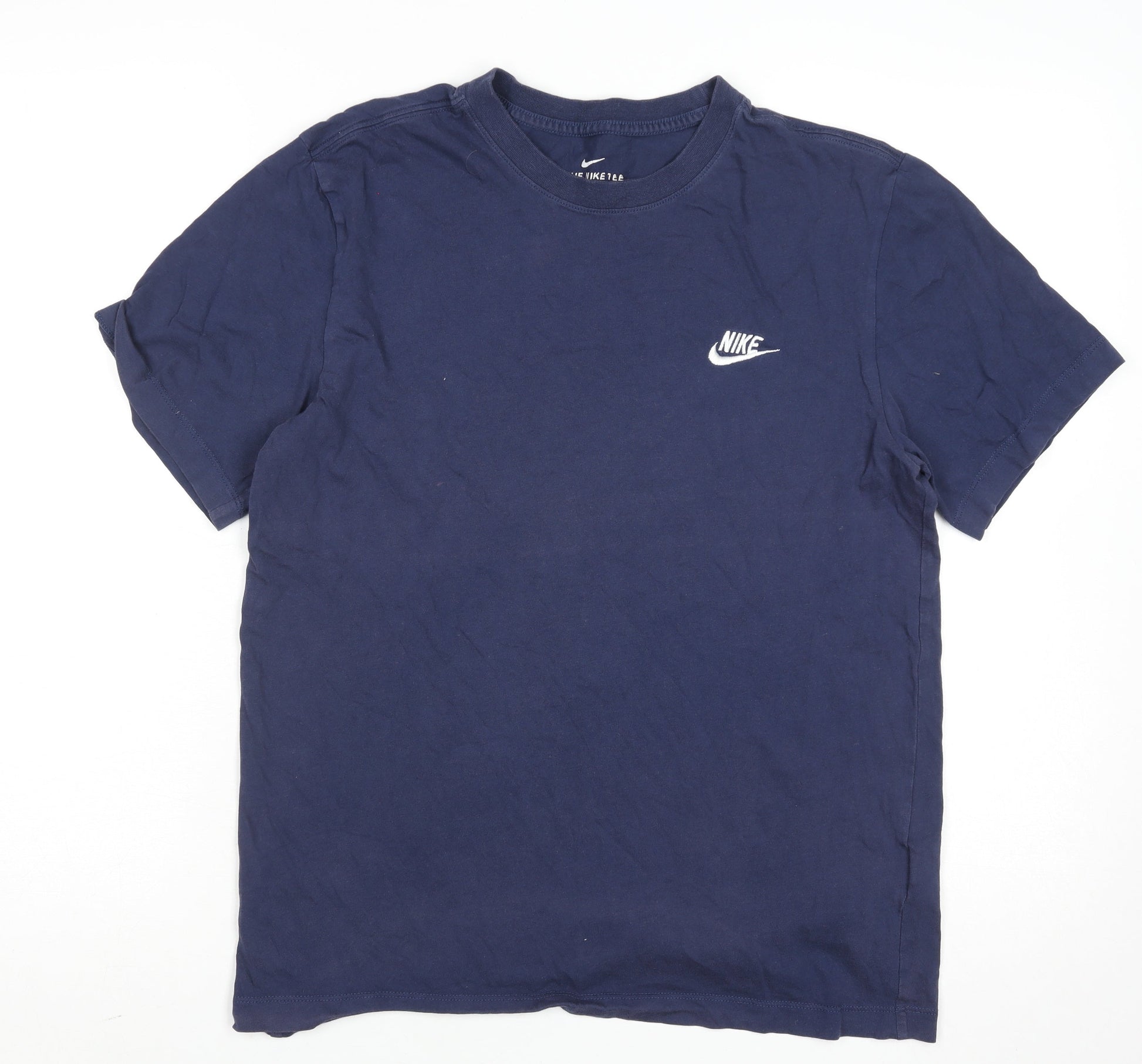 Nike Men's Blue Regular Fit Crew Neck Cotton T-Shirt Size M