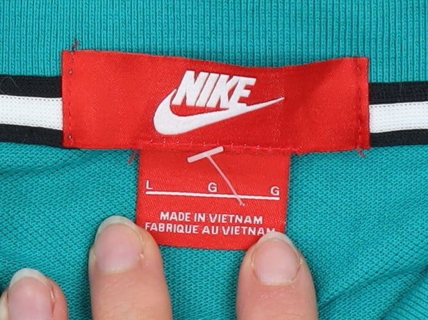 Nike Mens Green Cotton Polo Shirt Size L Short Sleeve Logo Top