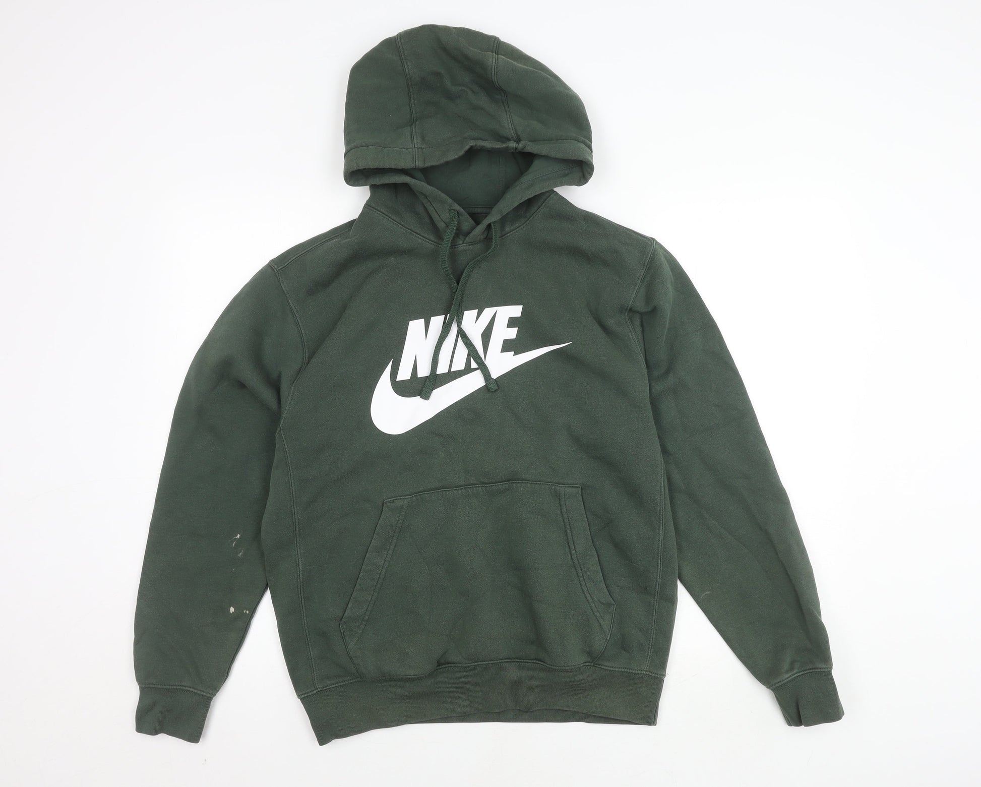 Nike Men's Green Pullover Hoodie S - Logo Design, Fleece