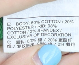 - Material Breakdown: 80% Cotton 20% Polyester