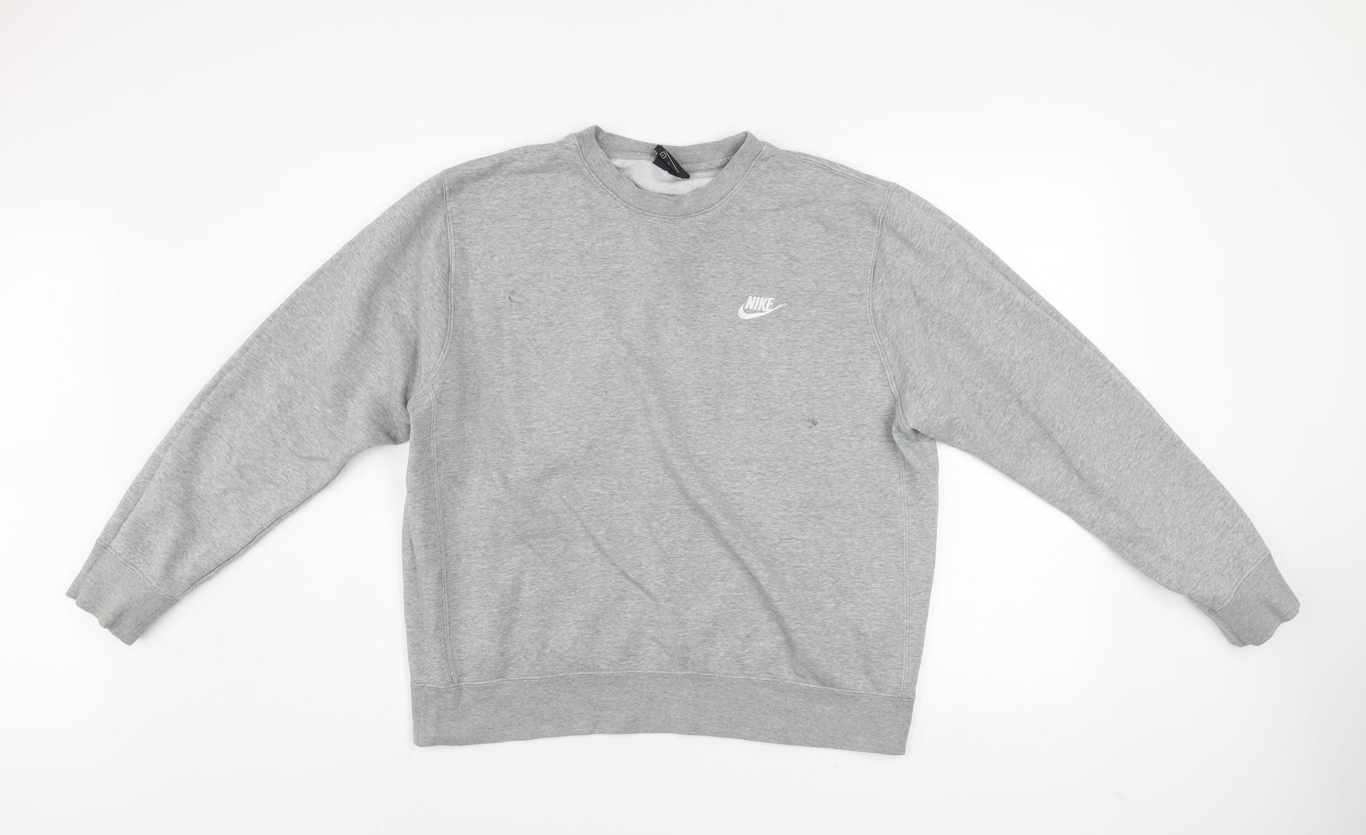 Nike Men's Grey Crew Neck Pullover Sweatshirt Size L Cotton Blend